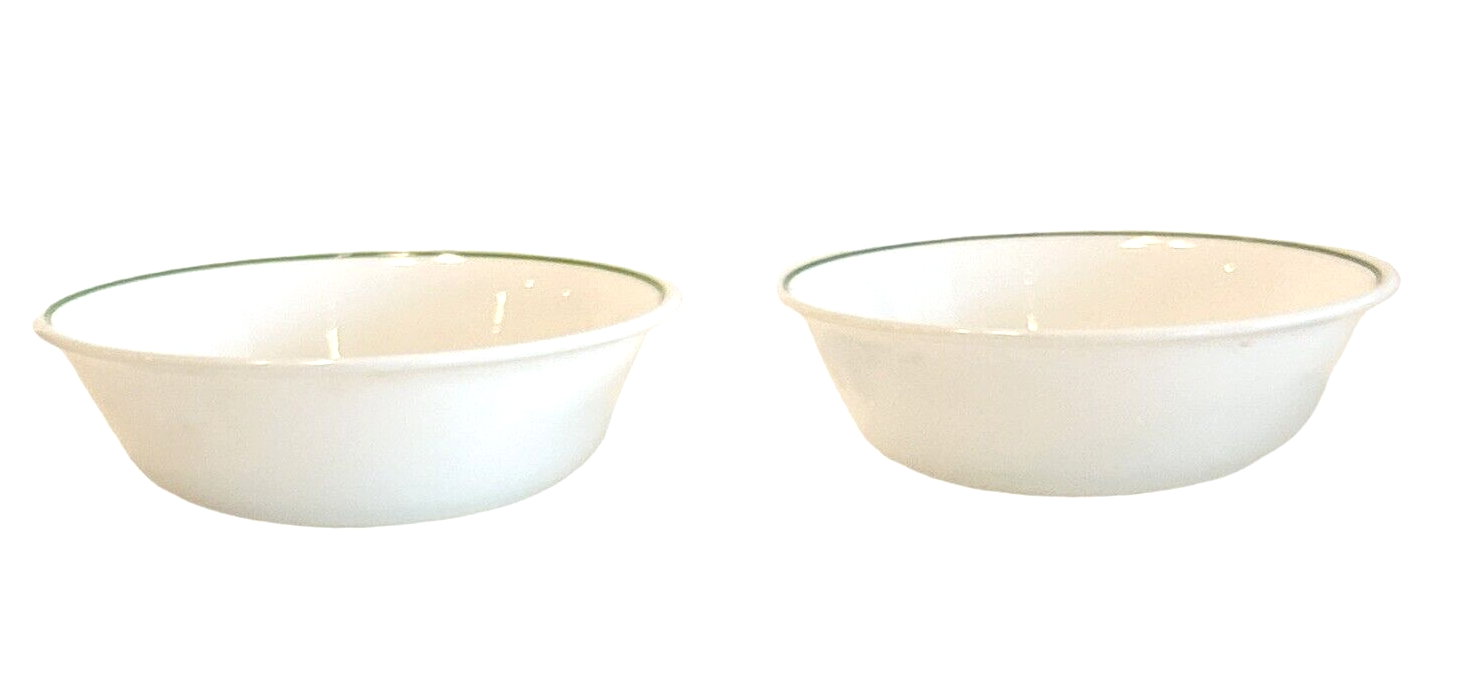 2 Corelle Holly Days Cereal Soup Bowls Christmas 6 1/4” USA Single Green Band Smoke free home Please visit my store at https://www.ebay.com/str/theuniqueredhead . Thank you for your consideration. Please message me if you have any questions. I do combined shipping on my items in the store.