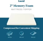 Traditional Foam MATTRESS REFRESH: 2-inch medium-firm mattress topper softens an overly firm mattress; no-slip bottom makes sure your topper stays put through the night INSTANT COMFORT: Traditional foam adjusts to your body weight and position for amazing pressure relief; ventilated to make sure you stay cool and comfortable ADVENTURE FRIENDLY: Mattress topper is perfect for camping, drive-in movies, and overnight guests; easily rolls up to store in closet or small space QUICK SETUP: Unbox mattress topper and let expand for 24 to 48 hours; new foam scent is normal and will disappear within first few days HIGH QUALITY: Boxed mattress topper is made of CertiPUR-US certified foam; 3-year warranty guarantees quality so you can rest easy every night The LUCID 2-Inch Traditional Foam Mattress Topper is the perfect solution for softening a mattress that’s too firm for comfort. The traditional foam provides consistent support throughout the night by conforming to your body weight and position to offer comfort and pressure relief. Ventilated for increased airflow and to provide a cool and comfortable sleep environment. Designed to work in conjunction with your fitted sheet, this topper is 1-inch shorter on all four sides to accommodate a secure and stable fit. This mattress topper is made of only the highest quality CertiPUR-US certified foam for uncompromising safety and comfort. Soften your firm mattress with the LUCID 2-Inch Traditional Foam Mattress Topper today.