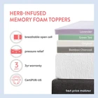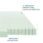 "2-Inch Green Tea infused memory foam topper add more comfort to your current sleeping situation with a 2-inch Green Tea infused memory foam topper. This latest trend in sleep innovation allows you to experience the advantages of memory foam without breaking the bank. the special ventilation design increases air flow and reduces trapped body heat while the memory foam reduces motion transfer between sleep partners for a better sleeping experience. In addition, the Green Tea extract infused into the memory foam topper naturally defuses odors and creates a cleaner more welcoming environment for a great night's sleep. Features: layers: 2 inch memory foam infused material: Green Tea extract sizes: (inches) twin (39 x 75 x 3) twin XL (39 x 80 x 3) Full (54 x 75 x 3 ) short Queen (60 x 80 x 3) Queen (60 x 74 x 3) King (76 x 80 x 3) safety and performance: foam is CertiPUR-US certified for highest standards sleep in comfort: enjoy a good night’s sleep when you add this 2-inch mattress topper to your bed. Rest assured knowing your body will comfortably lay in the memory foam that will relieve pressure points on your body." 2-Inch green tea ventilated memory foam topper adds comfort and support to your current sleeping situation Body-conforming memory foam provides incredible comfort throughout the body Responsive active suspension isolates motion so no disruption for your sleep partner Green tea infused memory foam for calming effects and odor control CertiPUR-US certified foams, 3-year manufacturer's warranty Product Note: Please allow up to 72 hours for the topper to rise