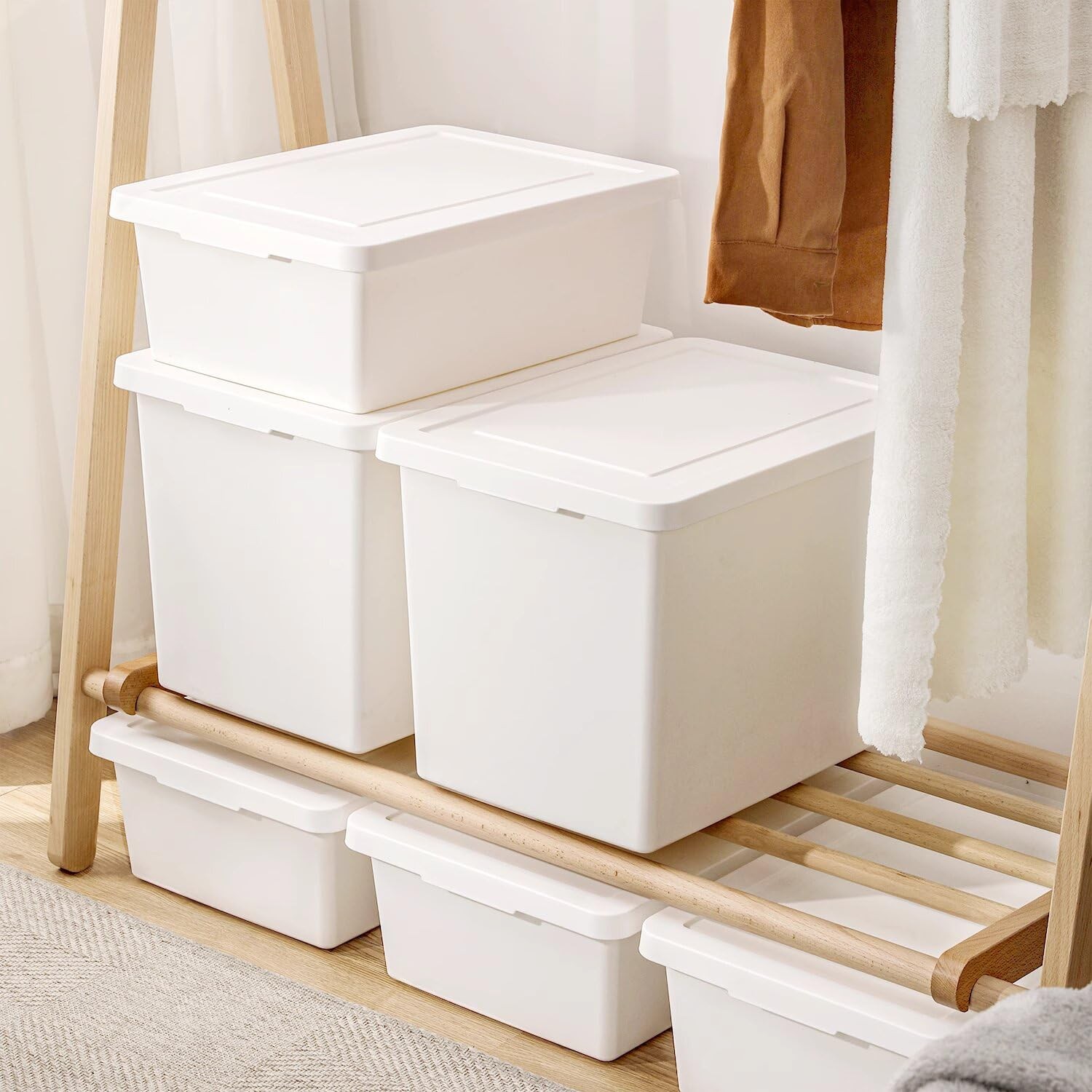 6-Piece Bamboo-Lidded Plastic Storage Bins Set – Organizing Baskets