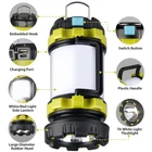 High Lumens Flashlight & 6 Modes: The camping lantern with high/low brightness mode provide a brightness of up to 1000LM light over a beam distance of 300m to meet the effective distance need in life. The white side light with high/low brightness mode can as a lantern with 360° beam angle, provide you a full range of lighting in the dark. The red side light with stable/strobe mode can as a warning or lifesaver in an emergency, you can give out an SOS signal to get help from around. USB Rechargeable & 4000 Capacity Power Bank: With built-in rechargeable batteries, the lantern flashlights can be charged via a regular 5V USB charging cable (included), more convenient than other lanterns that need AA batteries. No need to waste money replacing batteries frequently. The lantern flashlight can also serve as a 4000mAh power bank to charge other smart devices in an emergency that no need to worry about losing contact due to a dead phone during the trip. IPX5 Waterproof & Drop-resistant & Durable: Constructed with durable ABS material and IPX5 waterproof design, the camping flashlight can provide maximum durability and water resistance whenever or wherever you go. The military-grade material and compact structure with good crash resistance can effectively prevent damage from the collision and drop. The IPX5 waterproof rating and the rubber cover of the USB port can easily resist water splash from all angles in any adverse weather conditions. Portable & Hanging & Lightweight: The led tent lantern lamp is a portable size (6.93 x 3.15in) and lightweight (0.77lb/pcs), smart construction and streamlined design allow you to take lantern on the go with ease. The easy-to-grip handle is especially suitable for long-time carrying in outdoor night activities. Each camp light also equipped with a two-way hook and lanyard, easy to hang on backpacks, tent or tree branches to free your hands. It can also be hung high for help in case of emergency. Easy operation & Wide Application: The camping lanterns battery operated is is easy-to-use with just a press of a button to brighten the area in just a second. The camping essentials light is your steadfast companion for any outdoor escapade or unexpected situation. Whether you're camping under the stars, hiking rugged trails, fishing at dawn, navigating a boat by moonlight, fixing your car in the dark, or braving a power outage, this dependable light source will guide your way. Please use a 5V charger for charging, in order to achieve better charging efficiency. When fully charged, the indicator light turns red to blue.