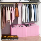 Large Storage Capacity: These bins won't take up too much space, the shoes are all vertical and compact inside, much more space saving than plastic shoe bins. Perfect for shoe collector, big family or seasonal shoe storage, keeping shoes clean and dust-free. Foldable to save space when not in use. Large Storage Capacity: These bins won't take up too much space, the shoes are all vertical and compact inside, much more space saving than plastic shoe bins. Perfect for shoe collector, big family or seasonal shoe storage, keeping shoes clean and dust-free. Foldable to save space when not in use. Adjustable Dividers: The dividers can customize the compartment sizes for meet various storage needs. and organize your shoes, sandals and boots. Even clothes, pants, leggings and towels can be stored with this organizer. Clear Top: The clear see through cover allows you to see what shoes inside at glance. The durable -way zippers make them easy to open and close. Strong Structure: Made form durable tear resistant non-woven fabric, sewn with thick stitches and supported by pp boards, the handles surround the box, giving the box much more strength to hold heavier loading than stitched handles. Measuring 17"L x 17"W x 12 ½"H, suitable for use in bedroom, cubby, entryways, attic, basement, dormitory, cloakroom, garage, closet, RV, shelf, and wardrobe.