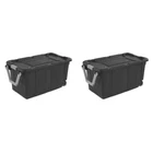 Bring order to garages, basements, and attics with the heavy-duty design and unique features of Sterilite’s Industrial Tote line. Be confident that stored items will stay protected in the durable 40 Gallon Wheeled Industrial Tote, the ideal portable solution for storing larger and heavier supplies. The grooved lid design and keyholes provide options for tie-downs to simplify transportation, and keep totes in place in the back of a pick-up truck. The ergonomic handle rotates up for easy pulling while the large wheels and metal axle allow for rolling over rough surfaces. The innovative drip-resistant lid provides maximum protection against items getting wet, while the tight-fit lid keeps items contained. The robust latches offer extra security that the lid will stay attached to the base, and the textured surface makes for a sure grip when carrying. The deep recessed lids provide stability when stacking for efficient use of storage space. Channeled walls provide added strength and help to resist crushing under heavier loads. The 40 Gallon Wheeled Industrial Tote is ideal for more active storage needs, store camping equipment, sports gear, tools and workshop supplies, and other bulky items. The overall assembled dimensions of this item are 36 3/4" L x 21 3/8" W x 18" H. Sterilite Adult Plastic 40 Gal. Wheeled Industrial Tote Flat Gray Outside Dimensions: 36 3/4" x 21 3/8" x 18" Interior Dimensions at bottom: 30 1/2" x 16" x 17 1/8" Heavy-duty construction with robust non-slip grip latches Ergonomic handle rotates up for easy pulling and large wheels with metal axle allow for rolling over rough surfaces Deep recessed lids offer secure stacking capabilities helping to maximize available storage space Tight fit drip-resistant lid provides maximum protection against items getting wet BPA-free and phthalate-free
