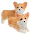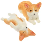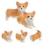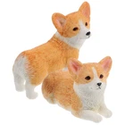 2 Pcs Corgi Dog Statue Animal Resin Ornaments Toy Gift Model