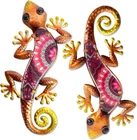 2 Pcs Metal Gecko Wall Art Sculpture for Outdoor Garden Décor - Red