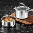 【18/10 FOOD GRADE STAINLESS STEEL WITH THICK STEAMER】- The steamer pot uses 18/10 food grade stainless steel for higher Corrosion resistance and anti-oxidation performances, which commonly used in medical as super and healthy material. Besides, the unique thick steam net design can save energy while cooking food quickly! 【5 LAYER COMPOSITE MATERIAL WITH MULTIPLE FUNCTIONS】- The sauce pan made of 5 layer composite structure that conducts heat quickly and increasing the using life. The saucepan has multifunction that it is convenient to use and can be combined out of the willing of the user! 【DOUBLE BOILER COMBO WITH HANGING STAINLESS STEEL HANDLE】- The stainless pots for cooking has a full cap base featuring a thick aluminum core surrounded by stainless steel for fast heating. HZIB pots is specially designed with a long hanging stainless steel handle that can resist high temperature cooking, nice to grip and easy to maneuver the pan, as well as stays cool when cooking! 【DISHWASHER SAFE AND APPLY TO ALL STOVES】- This saucepan with lid can stand higher temperatures and dishwasher safe. Suitable for all cooktops for this stainless steel pot including Gas stove, Induction cooker, Electric stove, Ceramic stove and oven, broiler-safe up to 600°F. Good for baby's food, pasta, veggies, meat. Add it to your nonstick pot! 【HZIB CARE ABOUT YOUR EXPERIENCE】- We care about the satisfaction from you and aim at provide the qualified and best value saucepan. All of HZIB cooking pot qualify for 12 months warranty. Our professional customer service team provides prompt service to help you to solve any problem!