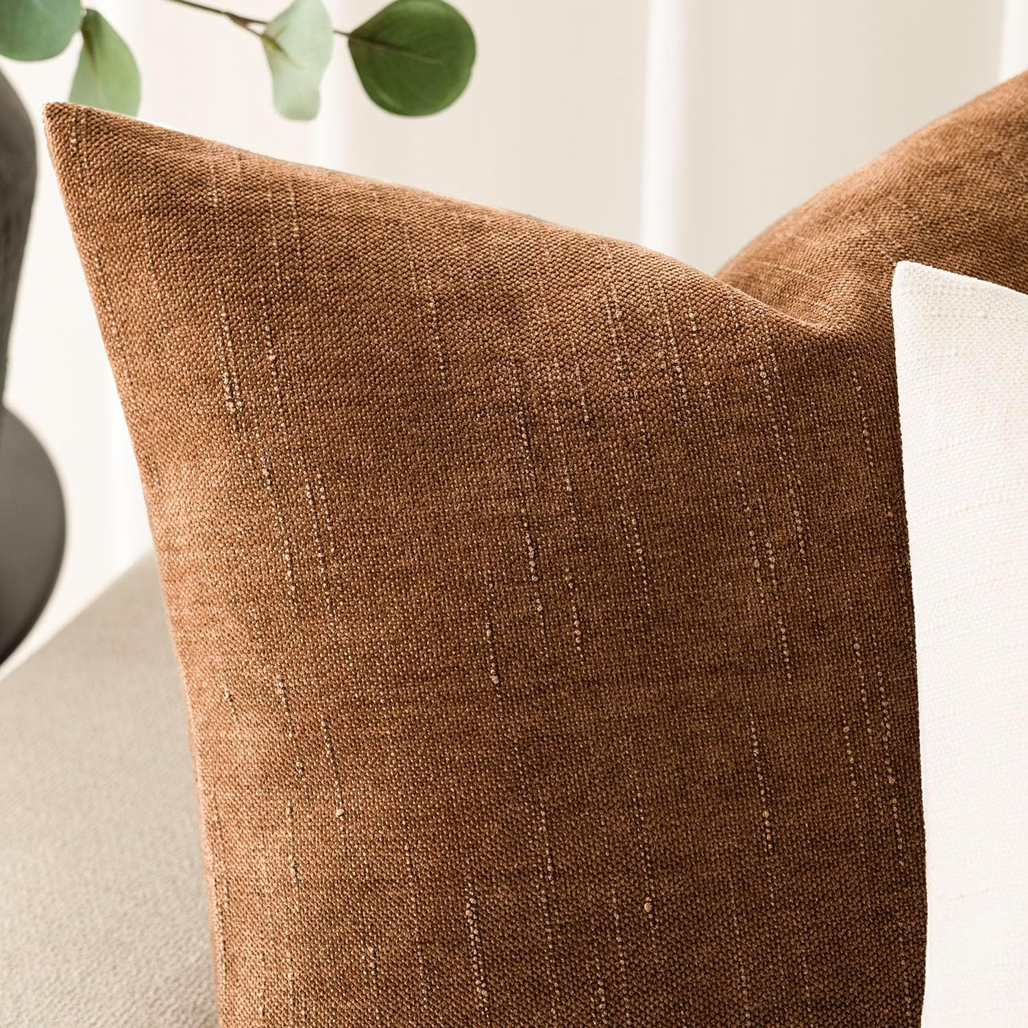 Faux Linen Chenille 【MIXED FABRIC】: Made of solid thick durable faux linen chenille, which is not only luxury like chenille but also textured like linen. The fabric is super soft to touch and feel, skin-friendly for kids and pets, good anti-wrinkle, anti-fading and anti-static properties. 【SLUBBY TEXTURE】: Designed with slubby weave, the pillow covers are not only soft but also textural with a touch of sheen. The misty tones mix effortlessly for style potential that spans all seasons. 【VERSATILE USE】: Our pillow covers brings elegant look to your home space, suitable for living room, bedroom, sofa, couch, chairs, car seat, floor, bench, office, party, dining room, outdoor, Etc. 【NEUTURAL STYLE】: The pillow covers' trendy and timeless slubby texture, with the natural earth toss color, create a warm and cozy feel that you won't be able to resist while held. 【PLEASE NOTE】: Cushion cover only, no Insert. 20X20 Inches / 50X50 cm. Please use hand wash or gentle machine wash; dry clean recommended. Do not bleach. If any problems, please kindly contact us, we offer free replacement and return. Choose A Textured Chenille Cushion Cover Perfect for decorating your room in a simple way. Suitable for living room,bed room,sofa,couch,bed,car,seat,floor,bench,office,cafe,ect. ✔Material:100% polyester fabric. ✔Size:20 x 20 IN / 50 x 50cm.Please allow 1~2cm deviation because of hand-cutting and sewing. ✔Package included:2 pillow covers without pillow insert. Click ‘Add to Cart’ now!