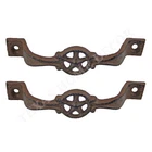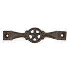 2 Star Door Handles #G071 Set of 2 new handles Made of cast iron with a rustic brown finish Measures 6 1/4 inches in total length by 1 inch wide at the base Each handle has 2 predrilled holes Mounting holes are 5 3/8 inches apart The space between the mounting surface and the handle is 1 1/4 inches Great for rustic furniture, coolers, shed doors, drawers or cabinets