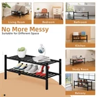 2 Tier Bamboo Shoe Rack Storage Organizer for Closet, Multifunctional Stackable Free Standing Shoe Shelf Organizer for Small Space,Entryway,Hallway,Bathroom 27"x11"x13" (Black, 2 Tier) Stackable Design: Each type of shoe rack is stackable, and you can design the height you want according to the needs of your living space. For example, two 2-tier shoe rack units can be stacked into a 4-tier shoe rack, or two 3-tier shoe rack units can be stacked into a 6-tier shoe rack. We have 2 colors and 4 heights for you to choose from, creating your unique living space Large Capacity Space: This stackable shoe rack utilizes space through adjustable layers, making a small space three-dimensional and allowing you to store many things. Each tier is about 6.35" high,enough to store what you want. Each tier can hold three pairs of shoes without crowding, and reasonable space utilization makes your home more tidy and orderly Natural Materials: Natural bamboo growth fills the home with a natural atmosphere. Using naturally grown bamboo as the material, it is finely cut and subjected to high-temperature carbonization treatment to become sturdy and durable. The careful polishing process and fine coating technology make the surface of the bamboo shelf smooth, without harming your skin and clothing Multi Functional Storage: This shoe organizer keeps your shoes organized, with 4 heights to choose from, suitable for most home environments. In addition, this shoe rack has multiple uses, and its simple and elegant design can help you organize daily necessities such as toiletries, towels, books, small plants, etc. in the bathroom, living room, office, and kitchen. It maximizes space utilization, simplifies structure, and helps you maintain a clean home No Additional Tools Required: The foldable shoe rack comes with illustrations and is easy to install. The package contains all the necessary tools, and with the accompanying screws and hex wrench, assembly can be easily completed. The shoe rack adopts a mortise and tenon structure and groove connection, which is very sturdy and durable. In less than ten minutes, you can complete the installation and get a practical shoe rack After-sales Service: The easy to assemble structure makes the bamboo shelf easy to maintain, and it only takes up space in a small box when stored. If you have any questions, please feel free to leave us a message. Our after-sales customer support team will reply to you within 24 hours