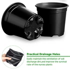 Description Features: Nice gifts: These nursery seedling pots are suitable for sending to your friends, colleagues, relatives, neighbours, family members and others who like planting and gardening, they will be happy to receive these gifts. Make your own garden: Our plastic potting containers are suitable for planting most small and medium sized plants, designed into black color, which can decorate your garden, office and room with plants and flowers. Specifications: Material: PP plastic Color: black Size: approx. 3 x 2.5 inches, 4 x 3.5 inches, 5 x 4.5 inches and 6 x 5.3 inches Package includes: 200 x Plastic nursery pots Notes: Manual measurement, please allow slight errors on size. The color may exist a slight difference due to different screen displays. Rich in Quantity: you will receive 200 pieces of plastic nursery pots in 4 different sizes, enough quantity and different size to meet your needs and replacements, and you can also share some with your friends and family members Reliable Material: these plant containers are made of PP material, reliable and reusable, sturdy and lightweight, not easy to break or fade, which can serve you for a long time and you can use them with confidence 4 Sizes to Choose: the planter nursery pots are designed into 4 different size, namely approx. 3 x 2.5 inches, 4 x 3.5 inches, 5 x 4.5 inches and 6 x 5.3 inches, 50 pieces of each size, you can choose your desired sizes according to your needs, suitable for seeding, cutting and transplanting Drainage Holes Design: these seed starter pots are designed with drainage holes in the bottom, which can help ventilate and drain, improving seed survival and preventing root rotting; The top edge is raised to make them easy to stack for storage Wide Range of Applications: the round plastic flower pots are practical and useful tools, which can be widely applied for planting vegetable, flowers, succulents, orchids, herbs, lilies and so on, suitable for placing in your garden, lawn, yard, patio, living room and other places you like