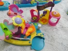 2002 Polly Pocket Playsets- Amusement Park, Carousel, Butterfly Ride, Flower Fairies Flying School Motorized rides on amusement park playset for ferris wheel and tea cup ride- uses 2 "C" batteries, working, clean battery compartment. Missing loop for aerial ride. Flower Fairies Flying School missing pieces.
