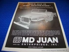 UP FOR SALE IS AN ORIGINAL PRINT 1-PAGE ARTICLE ON: 2004 MD JUAN JEEP RESTORATION "YOUR ALLY IN JEEP..". .. … … … VERY RARE ORIGINAL SALES AD*** Page size: APROX: 8.5" X 11" ARTIST/AUTHOR: MD JUAN ENTERPRISES INC. SUBJECT: . 2004 MD JUAN JEEP RESTORATION "YOUR ALLY IN JEEP..". .. . ….. PERFECT FOR FRAMING YEAR: 2004 ORIGINAL PRINT ….. A MUST HAVE ARTICLE!! CONDITION : GREAT- NORMAL FADING/WEAR ** SOLD FOR 1 PAGE/S ON SUBJECT LISTED ABOVE ONLY ...…ANY ARTICLE/PHOTOS/DRAWINGS ON BACK OF SUBJECT ARTICLE ARE NOT REPRESENTED IN THIS AUCTION!*** ** THESE LOOSE PAGED ARTICLES.. HAVE BEEN PROFESSIONALLY EXTRACTED FROM AGE/PERIOD MAGAZINES/BOOKS..... AND ARE BEING OFFERED ON SINGLE SUBJECTS FOR: COLLECTORS/MODEL BUILDERS/AVIATION COLLECTORS/RESEARCH/STUDY/STUDENTS/OWNERS OF AIRCRAFT... AND ARE NOT COMPLETE MAGAZINES OR BOOKLETS AS PHOTOS SHOW! (REMEMEBER THESE ARTICLES ARE EXTRMELY OLD AND RARE...SOME MAY HAVE SOME BORDER DISCOLORATION/SMALL EDGE CHIPS/PAGE DISCOLORATION)…..SEE CONDITION AND NOTES LISTED ABOVE AS TO EACH ARTICLE! **all articles are shipped flat on cardboard flat and mail flat in manila ** I DO OFFER COMBINED SHIPPING ON MULTIPLE ITEMS PURCHASED