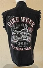 DESCRIPTION: 2016 Daytona Beach Florida Bike Week 75th Annual 'FEEL THE RUMBLE' Men's Harley Davidson Style Sleeveless Black Denim Motorcycle Vest in Size XL. THIS WAS WORN ONE TIME AND HAS BEEN SECURELY STORED EVER SINCE. IT'S IN EXCELLENT PRE-OWNED CONDITION! NO HOLES, STAINS, FRAYS, ODORS, ETC. This comes from a smoke-free and pet-free home. This will arrive fully washed, sanitized, and ready to wear or display. (See photos for details and condition) MEASUREMENTS/SIZING: No tag, unbranded. Fits and measures like an XL. Underarm to underarm/pit to pit (laying flat): 23" Length (laying flat) Neckline to bottom hem: 31" DISCLAIMER: Please review the measurements and photos very carefully. This is a used shirt, and some light wear/fading should be expected unless otherwise noted. Please ask any and all questions prior to purchasing. This is being sold as-is, and no returns are accepted. SHIPPING: Fully secure and insured shipping via USPS Mail. I SHIP FAST!! Please check out my other items for more awesome, vintage clothing and unique merchandise!!! Thanks for looking!