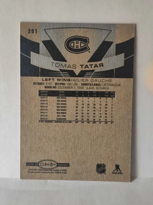 Type:Sports Trading CardManufacturer:O-Pee-CheeFeatures:Base SetSeason:2019-20Sport:Ice HockeyPlayer/Athlete:Tomas TatarTeam:Montreal CanadiensLeague:National Hockey League (NHL)