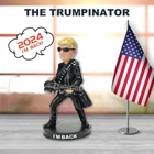 Experience the Upgraded 2024 Trump Bobblehead: Featuring a fresh design with the bold statement "I'm back!" symbolizing Trump's anticipated return in the 2024 election! Crafted with Precision: Hand-painted to perfection, the Trumpinator Bobblehead 2024 exhibits exquisite details suitable for devoted Trump supporters and patriots—making it an ideal Trump-themed gift. Distinctive Design: This Donald Trump merchandise features a uniquely stylized the Trumpinator holding a Gatling, which is very cool and appeals to many collectors and enthusiasts. Versatile Decor Piece: From offices to homes and cars, this Trump bobble head enhances any space. An excellent choice for birthdays, holidays, Christmas, and various occasions—it also makes a great Trump gift for Trump admirers. Elegant Presentation: Delivered in an intricately designed gift box featuring Trump's likeness and campaign slogan, this Trump bobblehead promises to delight as a whimsical and memorable Trump-themed present. Product Description