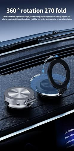 360° Rotating Magnetic Phone Mount - Secure Silver Vacuum Suction for Hands-Free Driving