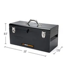 This sturdy steel tote box is a game-changer for organization! The black finish looks sleek, and the built-in tray keeps smaller items neatly separated. The locking clasps add security, and the solid steel construction means it can handle tough jobs. Perfect for tools, crafts, or shop supplies—so much storage in a compact size! Love that it comes with a warranty too. Definitely worth it!