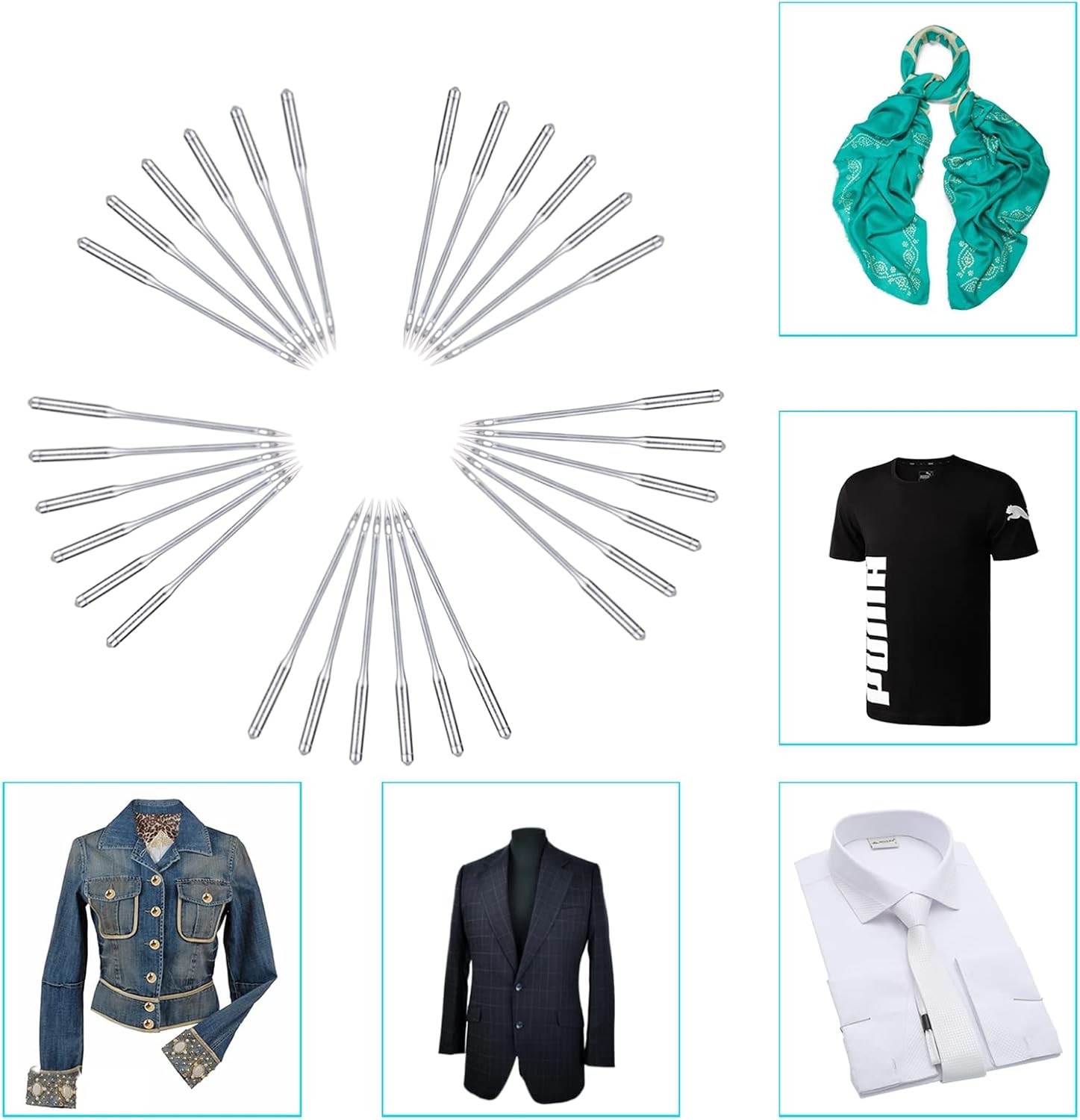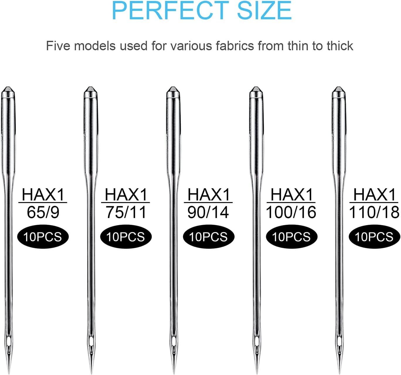 Free eBay listing template designed by dewiso.com Sewing Machine Needles, 20 PCS Universal Sewing Machine Needle, Compatible with Singer, Brother, Janome, Varmax, Size HAX1 75/11, 90/14 FREE AND FAST SHIPPING! About this item PREMIUM QUALITY MATERIAL: Made of top quality high-strength steel, sharp smooth, sturdy and durable, not easy to bend, and long service life. VALUE PACK & PERFECT SIZE:This set come with two sizes: 75/11, 90/14, 10 needles per size, total 20 needles. Also includes 2 storage tubes (free) and 3 bobbins (free). PERFECT COMPATIBILITY: They are compatible with most household sewing machines or old sewing machines, such as Singer, Brother, Janome, Varmax, etc. Notice! Not suitable for industrial large sewing machines. ENJOY THE FUN OF DIY: More Perfect for medium-thin fabrics such as shirts, satin (size: 75/11), ordinary fabrics such as windbreakers(size: 90/14). INTIMATE GIFT: The set is an amazing gift for your relatives, friends, families, mother and wife. Product We offer a 30-Day Return Policy on items which you are not completely satisfied with. You have the option for a full-refund or an exchange of the item. No returns are available on items shipped outside of the US . Shipping We offer Free Shipping to the US and ship within 2 business days of payment, usually sooner. We use UPS express shipping. That's why your products are usually delivered within 3 days . Contact We try our very best to make sure every customer is completely satisfied. If there's a problem , message us! We're happy to help. 24/7 live chat available.