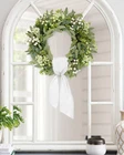 Artificial Eucalyptus Wreath 【All year round wreath】Available all year round:spring, summer, fall, and winter. Add themed decorations according to the festival, this is a flexible and versatile wreath. 【Full and realistic】 's handmade green eucalyptus wreath features eucalyptus leaves, boxwood, white/green berries, andmany small berries embellishedon it, making the wreath full, natural and realistic. Its elegance add a vibrant and pleasant vibe to your home. 【Perfect Size】 This spring wreath is 22 inches in diameter. Each rustic farmhouse eucalyptus wreath is packed in a sturdy and exquisite box, suitable as a gift for friends. Note that because the wreath is compressed by the box to avoid being damaged during delivery, please fully stretch it to reach its maximum size. 【Versatile】This gorgeous wreath is a versatile decoration. It is suitable for all seasons of the year, spring, summer, fall and winter. You can add elements from each season, such as bells and pinecones, to turn it into a Christmas wreath. When you design it yourself, you will find that your wreath is the most unique scenery. It can be hung on the wall, front door, porch, bedroom, living room, etc. It is perfect for indoor and outdoor, weddings and parties. It's elegance is sure to impress your family and friends. 【Durable】Made of high-quality materials. Colors will never fade; leaves will never fall; berries will never rot. No watering and special cleaning required. Can be used for years to come. 【Christmas Wreaths】This eucalyptus wreath with berries can be turned into a Christmas wreath by tying a red bow, pairing it with pinecones, bells, and some red berries. It will stay with you all winter long. 【TIPS】 If you have any problem with our products, please contact us immediately,we will reply you ASAP.