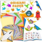 MOBYKE 238 Sheets Origami Paper, Origami kit for Kids with 54 Patterns Art Projects Colored Blank Origami Papers Origami Instruction Book Art and Craft Supplies for Children Travel Activities Project About this item COLORFUL ORIGAMI SET - Our kids' origami set contains 108 sheets of patterned origami paper with 54 patterns, as well as 130 sheets of blank colourful origami paper and an origami instruction booklet, which is enough for parents to accompany their children to do handmade origami activities with different patterns and spend a wonderful hour together. PREMIUM QUALITY - Made of high quality paper, soft and hard, easy to fold, kids can easily fold vivid images, which can develop children's hands-on ability and help them get a sense of achievement from it. GUIDED INSTRUCTION - An included origami instruction booklet with detailed steps can be kept for repeated learning and practice to help new players get started quickly. After the illustration is completed, it can also be made into a display on the table or hung on the wall to make your home more vibrant. BEST COMMUNICATION WAY- Our origami kit for kids are suitable for parents and kids to participate in DIY together, through this interesting and meaningful small activities, to develop tacit understanding with the child, understand the child's ideas at the same time to help the child to actively think and strengthen the child's hands-on ability to DIY artwork together, which is a great help to both children and parents. BEST PRESENT FOR CHILDREN - It is the best choice for childrens as holiday present and birthday presents, fun packaging with colourful origami activities full of kids' hearts, I believe they are surprised and happy when they receive the present.