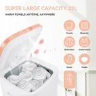 1: With 23L large capacity, can hold more towels. 2: Rapid heating in one minute, up to 275℉ in three minutes, with heating wires at the bottom and around, fast and uniform heating. 3: The overall material is composed of PP high temperature resistant material and galvanized iron, safe and assured. 4: Triple leakage protection, and through the FCC and ETL dual certification. 5: The bottom is provided with a coil cover, which can contain the wire. Both sides are equipped with handles for convenient storage.