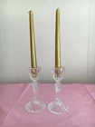 Set of 2 24 count lead crystal round candlesticks. Condition is New but no box. Detailed etching with round bottom. Splendid show piece for all occasions. They are a dramatic addition to any table setting. Measurements: 7 inches in height, 3.5 inches in width.