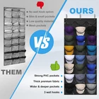 Space-Saving Helper For Your Home Troubled by the messy hat piled up on the ground or sofa? Hard to find the hat you need to match every time I go out? Look for a best way to Improve Home utilization & perfectly show off your hat collection with confidence? Rouceyxin hanging hat storage organizer over the door with 24 clear pockets would help you solve all issue! 24 PVC Clear Pockets Hat Holder for Door Closet Wall PRODUCT DETAILS Overall Size ( Baseball Cap Organizer): 65”L × 26.5” W 1 pack Hat Holder for Baseball Caps Organizers With 24 pocket 3 high-grade metal hooks.. Install in Seconds! Quick and easy installation NO tools or special skills needed. Just hang it on the door and you'll have instant storage space for your hats! Multiple Purpose The hat holder organizer for door or wall is not only a better organization of baseball caps, but also a good storage for toys, purses, snacks, socks, scarves, gloves and any other household items as you wish.