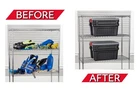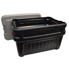 The 24 Gallon ActionPacker Storage Bin is tough and can withstand everyday usage. This heavy duty storage tote is made of impact resistant material and can withstand temperatures of 0-100 F. Featuring a double-walled lid, this storage bin will keep all contents safe and dry and is designed to prevent water from pooling on the lid top. This container also is designed to accommodate a lock, adding extra security to your contents. This storage container provides a storage solution for anything whether it be sports equipment, camping supplies, or even a tool chest. 24 Gallon ActionPacker Storage Bin, Heavy Duty, Lockable, Black, Included Lid Black base with grey lid and red handles Stackable Outside dimensions: 26.000 in. L x 18.500 in. W x 17.000 in. H Inner dimensions: 20.000 in. L x 14.500 in. W x 15.000 in. H 24 Gallon / 90.8 Liter load capacity, 50 pounds