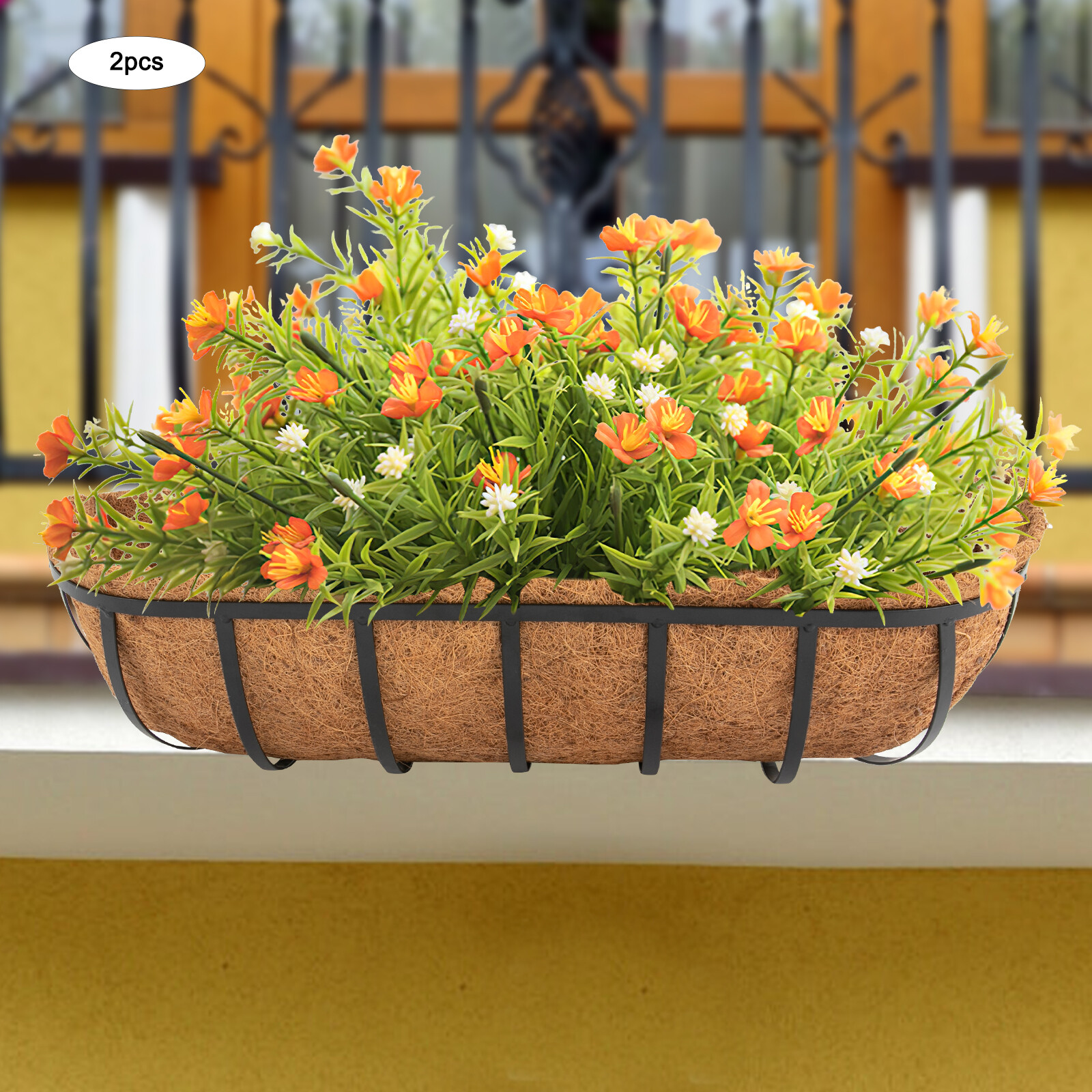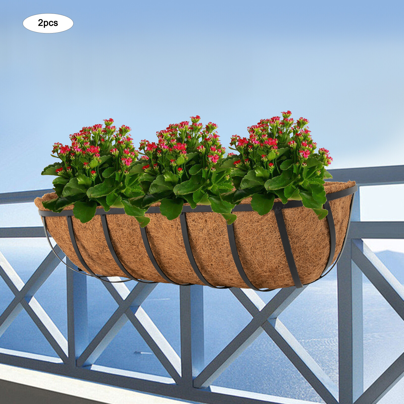 Love how this planter instantly brightens up my balcony! The coco liner keeps soil in place while allowing great drainage, so my flowers stay healthy. Sturdy, spacious, and easy to hang—perfect for adding greenery to any rail or window. A must-have for garden lovers!