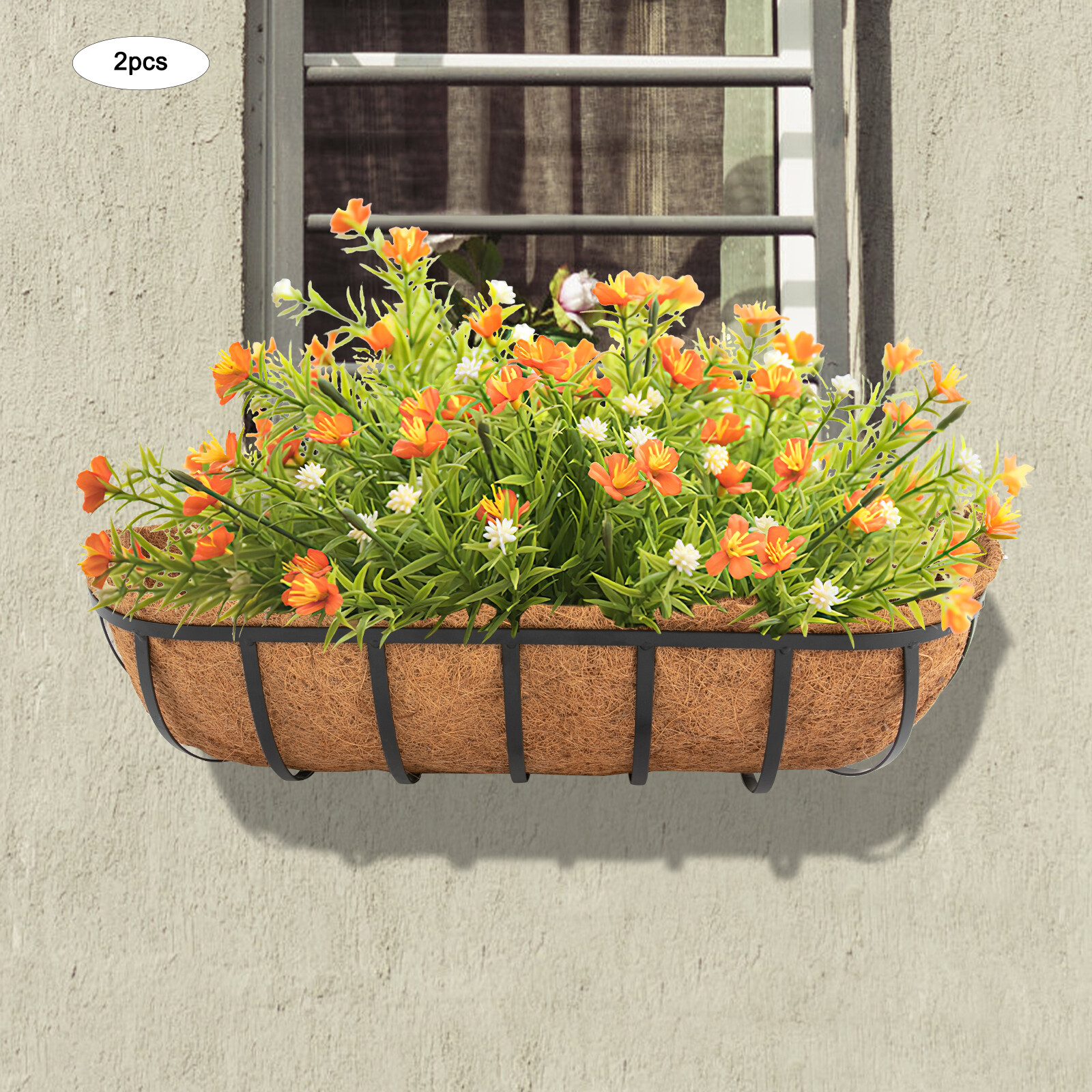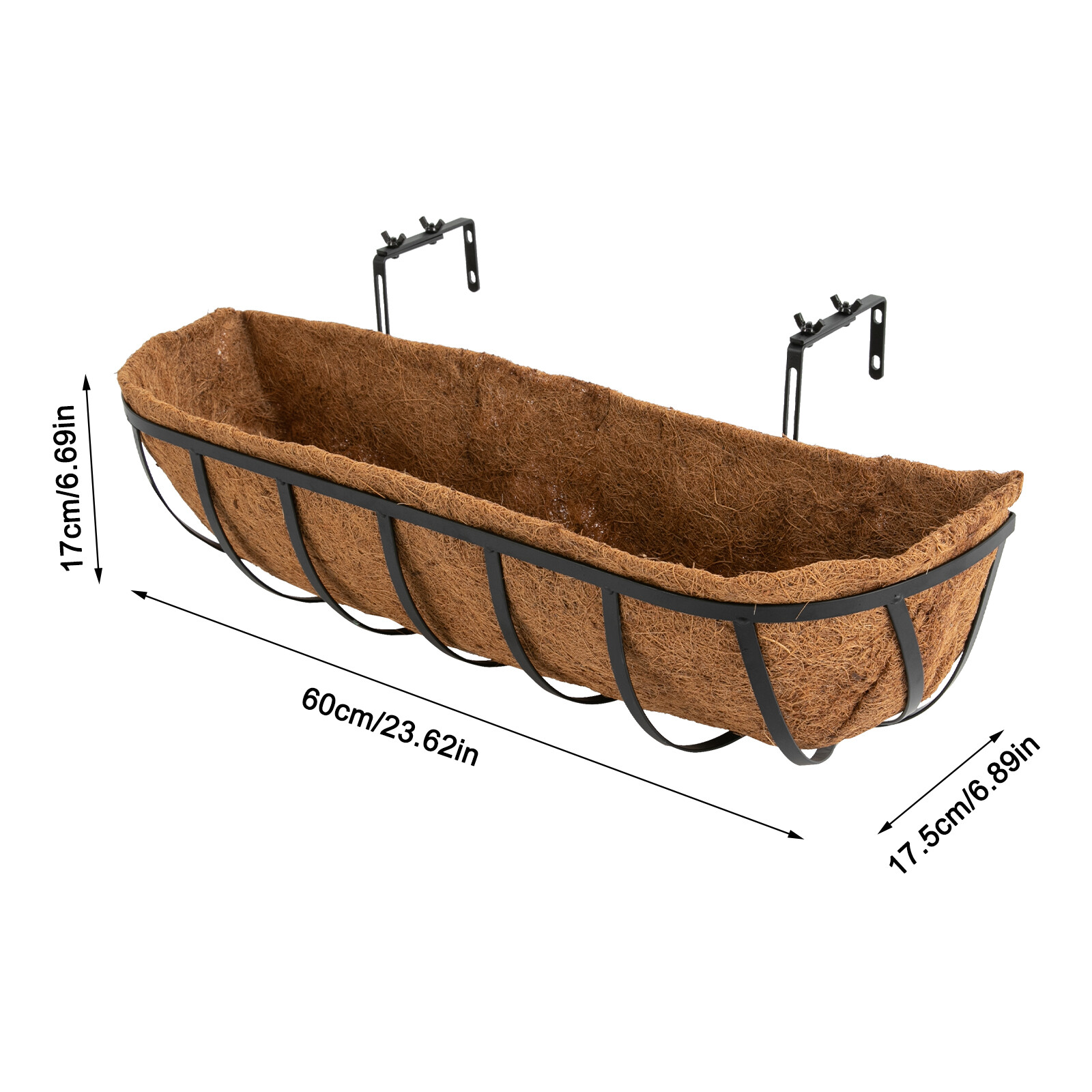 24" Railing Planter Window Box Hanging Planter With Coco Fiber Liner For Garden Description Are you looking for hanging planters that will add instant natural charm to your walls, windowsills, or garden? Our hanging window planter is the ideal decorations for you. With its large size, stylish appearance, and excellent air permeability and drainage performance, it allows a variety of flowers and plants to grow freely, providing them with a favorable growing environment while filling your space with a natural atmosphere. Key Features Build to Last: Mainly made of iron with the paint spraying process, the product is corrosion- resistant and anti-rust and can withstand a variety of weather conditions, providing secure support throughout the year. Set of 2 & Large Size: The package includes two planters measuring 23.62*6.89*6.69in, allowing you to grow different sizes and types of plants and flowers in thick soil to create beautiful and stunning floral arrangements, as well as providing them with a wide space to grow without any restrictions. Thoughtful Design: The coconut fiber liner helps keep moisture to hydrate plants while providing sufficient drainage . When you do not use the liner, it also degrades and composts itself, making it environmentally friendly. Adjustable Design: The width of the hook can be adjusted from 4 to 7.5in, allowing it to flexibly fit almost any width of the railing, providing good support. Eye-catching Appearance: The simple and elegant finish makes it adapt to various styles, making your space decoration more delicate and elegant. What's more, planting beautiful, vibrant flowers and plants (not included) makes it a beautiful natural landscape, bringing you a cozy and real-life experience. Assembly in a Breeze: Complete installation accessories, a simple structure, pre-drilled holes, and a clear installation diagram allow you to install it in a short time. Space-saving: It can improve the utilization of vertical space and create additional garden space without taking up too much of your living space. Ideal Gift: With a stylish appearance and high practicality, it is an excellent gift for a housewarming or other festivals for friends, neighbors, and family. Details Rounded Corners: Round edges and corners provide a comfortable touch to better care for your skin. Wing Nuts: They are convenient for you to adjust the hanging hooks by hand. Application This product can be used for home decoration, home gardening, balcony gardening, wedding decoration, and greening projects. It is suitable for balconies, gardens, terraces, walls, doors and windows, wedding sites, cafes, and libraries. It can be used to plant vines or flowers. How to Install Assemble the frame. Fix the hooks with screws. Plan plants (not included) in the liner with soil (not included). Place the liner in the frame. Specifications Material: Iron, Coconut Fiber Process: Paint Spraying Color: Black, Brown Style: Modern Pattern: Vertical Stripe Shape: Oval Mount Type: Hanging, Window Mount Assembly Required: Yes Number of Items: 2 Hook Adjustable Width : 10-19cm/4-7.5in Each Product Size: 60*17.5*17cm/23.62*6.89*6.69in Gross Weight: 3.2kg/7.05lbs Package Size: 62*25*19cm/24.4*9.8*7.5in Package Included 2* Frames 2* Liners 1* English Installation Diagram All Accessories for Assembly Notes It is not recommended to soak the liners in water before use. Please fix this product stably. Please note that this product does not include any flowers or plants. Please allow the slight color difference caused by the shooting light and 1-3cm error due to manual measurement, and make sure you do not mind before you order. Payment Delivery details Terms of sales About us Contact us Payment We accept ebay payment 。 Fees such as import duties, taxes are not included in the item price or shipping costs. These charges are the buyer's responsibility. Delivery details Shipping: 2-9 working days to: USA Terms of sales We maintain high standards of excellence and strive for hundred percent customer satisfaction. Feedback is very important to us. We hope that you contact us immediately before you give neutral or negative feedback, so that we can address your concerns. It is impossible to address issues if we do not know about them! About us Your satis faction is our ultimate goal. We work hard to earn your trust and future business. Our certified technicians have tested each item before shipping. The unit comes with 1 year limited warranty on all manufacturing defects. a) If you receive a defective item, you may return it or ask for a discount. Please contact us within 14 days after you receive the package. b) What you returned must be intact and in its original packaging as re? u. Customer is responsible for shipping costs of the returned item. c) We will cover the cost of shipping back t with the shipping rate indicated in the registration page. We will send you a new unit or refund the full payment you paid. Thank you. Contact us Business Hour Business Hour: Monday To Friday: 8:30 AM to 5:00 PM (Beijing China time) Due to time zones, our reply to your questions may not be immediately. But within above working time, we will reply your email within 24 hours. If it's non-workdays, please kindly be patient and wait till Monday. Please contact us with ebay message. Please feel free to contact us if you have any questions. Monday To Friday: 8:30 AM to 5:00 PM (Beijing China time) Due to time zones, our reply to your questions may not be immediately. But within above working time, we will reply your email within 24 hours. If it's non-workdays, please kindly be patient and wait till Monday. Please contact us with ebay message. Please feel free to contact us if you have any questions. On Mar 2, 2025 at 23:11:17 PST, seller added the following information: