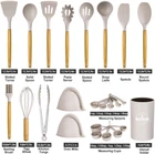 【Kitchen Utensil Set】- The silicone kitchen utensils set is made of food grade silicone and has no odor.Before the first use, we recommend soaking the tableware for half an hour and exposing it to the air for about 3 hours before the odor will disappear 【Cookware Health】- Silicone cooking utensils can withstand high temperatures of 446 ° F/230 ° C. Don't worry about food sticking to your cooking utensils. Silicone tips can protect your pot from scratches or dents on the surface of the cooking utensils. Extend the service life of all kitchen pans. They are scratch resistant, not as easy to melt as plastic and rubber tableware, nor as non stick pots that can harm you like metal kitchenware 【24Pcs Kitchen Utensils to Use】- This silicone tableware set can fully meet your kitchen needs, including a deep soup spoon, solid spoon, flexible spatula, circular spatula, spaghetti server, measuring cup and spoon, and more. Both cooking and baking tools are available. You will have all the basic cooking tools you need in your kitchen 【Large Kitchen Utensils Set】- integrated stainless steel core, seamless, easy to clean, enhances durability and toughness, helps maintain its shape and flexibility, and ensures no warping. Please note that due to the wear and tear on wooden handles caused by dishwashing, these silicone kitchen utensils used for non stick pots are not suitable for dishwashing with a dishwasher 【High Quality Service】- If you have any questions about the utensils set, please feel free to contact our customer service, and we are always at your service. We are committed to providing fast and supportive assistance to address any questions or concerns you may have. Please feel free to contact us through the Amazon buyer page. We will listen carefully and respond promptly within 12 hours