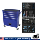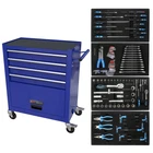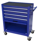 Product Features The metal storage cabinet comes with four wheels, two of which have parking brakes, so you can move the cabinet around freely or park in one place. The opening and closing of the drawers of the tool cabinet is very gentle thanks to the ball-bearing drawers. The storage surface provides additional space for storing and arranging tools you often need. The robust and powder-coated steel construction is used for high wear resistance. Description One Side with Pull Handle This product comes with a handle on one side, which not only helps to push and pull it more, but allows you to move it more freely 4 Drawers with Wheels Drawers can easily accommodate needed items such as folders, notebooks, tools, etc. 2PCS with Brake and 2PCS without Brake With swivel casters could maneuver easily around work area. The wheels have locking mechanisms to prevent the tool cabinet from moving around on its own while in use. Tool Set Four drawers with assorted tool sets Product Information Product Name 4 Drawers Tool Cabinet with Tool Sets Metrial Cold Rolled Steel Surface Finish Powder Coating Casters 4" Casters (2PCS with brake and 2PCS without brake) Size 24.25*13*29.33 Package Size 28.86*27*15.18 Color Blue Net Weight 19KG Gross Weight 21KG