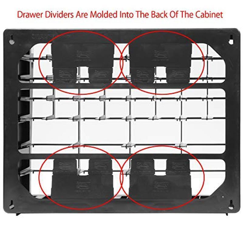 You may also like 3-Layer 5-Tray Metal Tool Box Cantilever Folding Red Storage Box Tool Organizer 61.65 USD 64.89 USD Free shipping 5% off Heavy Duty Steel Campfire Ring Portable Collapsible Fire Pit W/ Storage Bag New 46.92 USD 49.39 USD Free shipping 5% off Heavy Duty Toolbox Liner Non Slip Rubber Mat Drawers Cabinets & Workbench Black 44.45 USD 46.79 USD Free shipping 5% off Garage Tool Organizer Garage Yard Tool Organizer Garage w/ 6 Hooks Heavy duty 61.74 USD 64.99 USD Free shipping 5% off About this item HEAVY DUTY CABINET WITH 24 DRAWERS: The 24-drawer small storage cabinet is made from rugged, high-impact polystyrene plastic and measures 20" W x 6-3/8" D x 15-3/16" H; The plastic drawers have dimensions of 6" x 4-1/2" x 2-3/16" for ample storage space GARAGE ORGANIZATION: The small cabinet is great for garages and workshops for both homeowners and businesses; The plastic storage drawers can be used as tool box, screw organizer or for battery storage; Keep nails and other small parts accessible CLASSROOM ESSENTIALS: Teachers can use the stackable storage drawers for classroom organization; Use it as a teacher toolbox, art supply storage organizer, craft storage cabinet for scrapbook supplies, and more HOME STORAGE AND ORGANIZATION: This plastic storage cabinet offers many uses around the home; It can be a lego storage organizer, craft organizer, or sticker organizer; Use it for makeup storage and organization or for medicine and first aid supplies CABINET AND DRAWER FEATURES: Stack cabinets securely or wall-mount them using keyhole slots; Finger-grip drawer pulls provide easy access; Rear stop tabs prevent contents from spilling; Drawer dividers are included and molded into the back of the cabinet › product details Color:Black 2 Material:Polystyrene Frame Material:Plastic Brand:Akro-Mils Product Dimensions:6"D x 20"W x 16"H You may also like 1/4" Compact Air Die Grinder Right Angle 21000 RPM Lightweight Power Tool Metal 82.65 USD 87.0 USD Free shipping 5% off 3-Story Fire Escape Ladder 25ft Anti-Slip Steel Alloy Compact Foldable Sturdy US 104.97 USD 110.49 USD Free shipping 5% off Natural Clumping Cat Litter 50lbs Absorbent Sealant Feed Binder Multiple Uses 124.79 USD Free shipping Bamboo Laundry Hamper W/ Canvas Liner Portable Storage Rectangular Design New 98.7 USD 103.89 USD Free shipping 5% off 1500W Portable Electric Stove Single Burner 7.5" Cooktop Stay Cool Handles New 54.59 USD Free shipping Incubator Humidity Display Egg Antibacterial Automatic Turner Repel Insects NEW 74.0 USD 77.89 USD Free shipping 5% off Freestanding Portable Puppy Playpen Vinyl Fencing Indoor Outdoor Dog Kit New 104.87 USD 110.39 USD Free shipping 5% off 3 in 1 Rolling Makeup Case Large Capacity Organizer Portable Travel Trolley New 117.32 USD 123.49 USD Free shipping 5% off Lawn Mower Tires Tractor Turf Garden Yard Outdoor Tubeless Reduce Noise Durable 142.99 USD Free shipping Topwind Bolt-On Tongue Jack 2000lb Load Capacity Metal Trailer Accessory New 51.69 USD 54.41 USD Free shipping 5% off 6ft Pre-Lit Artificial Christmas Tree Hinged W/ 250 Lights Pinecones Berries New 129.05 USD 135.84 USD Free shipping 5% off Extra Large Rubber Doormat Absorbent Non Slip Backing Stain Resistant Heavy Duty 74.04 USD 77.94 USD Free shipping 5% off