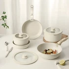 8 pcs Pots and Pans Set Non Stick Kitchen Cookware Sets 8 Pieces, White