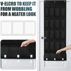 24 Pockets Hanging Door Shoe Organizer Storage Pocket Door Rear Closet with Hook DIFFERENT FROM OTHERS: This door hanging shoe storage box has 24 pockets and can hold up to 40 pounds of items. Contains three V-elcro stickers to prevent shaking, made of durable non-woven fabric with thick stitching and tear resistance. Durable and able to accommodate all your shoes. HIGH QUALITY BREATHABLE MATERIAL: This hanging shoe rack for door has high breathability, and the mesh pocket promotes air circulation, allowing the shoes to dry quickly. In addition, the transparent mesh fabric makes it easy to quickly find each pair of shoes. NOT JUST FOR SHOES: Measures 62 by 19 inches with each pocket measuring 7.8 by 4.3 inches,over the door shoe rack superior choice for storing nearly anything.Easily store crafting supplies, pantry items, beauty items, or household cleaning supplies in a highly organized and efficient manner. NO HARDWARE SETUP REQUIRED: Organizers can easily hang this hanging shoe rack for closeton most doors, including closets, mud rooms, bathrooms, garages, and other places. Say goodbye to bulky storage boxes that consume valuable space. Eazy to fold, and convenient to store when not in use. YOU WILL GET: 1* shoe rack for front door entrance Pocket, 3* Over the Door Hooks, 3* Double Sided Tape. Each pocket is 9-1/2“ high and 4-1/3” Warm tips adult shoes in a bag to put a shoe more convenient to take and put.If you have any questions, please feel free to contact us, we will reply you within 24 hours.