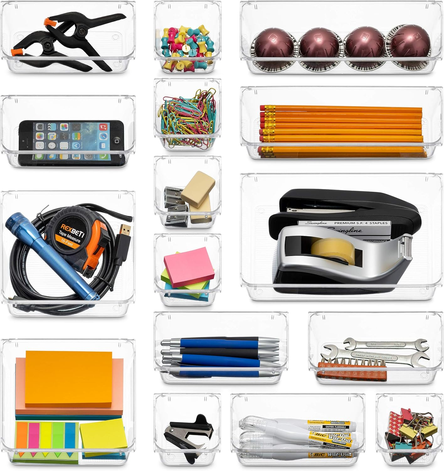 Store New Arrivals Add to Favorite View Feedback Contact Fast deliveries to the customer's home Quality customer service John Make the customers happy! 25 PCS Clear Plastic Drawer Organizers Set, 4-Size Versatile Bathroom and Vanity Drawer Organizer Trays, Storage Bins for Makeup, Bedroom, Kitchen Gadgets Utensils and Office Accessories Description Keep your Desks Drawers Dressers or Vanity neatly organized with these Multipurpose Clear Plastic organizer storage Trays. Practical design to help maximize your space. Use them side by side to keep items organized and easy to find. Ideal for kitchen drawers, vanity drawers, desk drawers, dresser drawers, pantry drawers. Great for closets, bedrooms, bathrooms, laundry rooms, craft rooms, mudrooms, offices, play rooms, garages, or any room of your home / apartment / condo / dorm room / RV or camper Great for storing organizing cosmetics, makeup tools, hair accessories, jewelry, office supplies, craft supplies, utensils, etc. Made of durable high quality BPA Free shatter-resistant plastic. Keep your Desks, Drawers, Dressers or Vanity neatly organized with these Multipurpose Clear Plastic organizer storage Trays. Practical design to help maximize your space. Use them side by side to keep items organized and easy to find. Ideal for kitchen drawers, vanity drawers, desk drawers, dresser drawers, pantry drawers. Great for closets, bedrooms, bathrooms, laundry rooms, craft rooms, mudrooms, offices, play rooms, garages, or any room of your home / apartment / condo / dorm room / RV or camper Great for storing organizing cosmetics, makeup tools, hair accessories, jewelry, office supplies, craft supplies, utensils, etc. Made of durable high quality BPA Free shatter-resistant plastic. Item model number SDOS16 Part Number SDOS16 Batteries Required? No Finish Polished Item Package Quantity 1 Color Clear Finish Type Polished Product Dimensions 0.39 x 13.39 x 29.53 inches Material Plastic Mounting Type Tabletop Mount Item Weight 350 Grams Specific Uses For Product Cosmetics Item Weight 12.3 ounces Batteries Included? No Special Features Lightweight Size 25 Piece Special Feature Lightweight Number of Compartments 25 Unit Count 25.0 Count Number Of Pieces 25 ABOUT US We offer the best prices around on high quality products. Our E-store includes media such as books, movies, music and games while offering electronics, toys, sporting apparel, clothing, tools, general home, garden items and more. SHIPPING We are always working hard to ensure your package arrives as soon as possible. Please understand that some factors like weather, high postal traffic, and the performance of shipping companies are outside of our control. We offer free shipping to the lower 48 states and ship within 2 business days of payment, usually sooner. We do not accept P.O. Boxes. Please provide a physical address. For shipping outside of the continental USA, we only use eBay's Global Shipping Program. The item is shipped to KY and then sent to the rest of the world. International customers are responsible for all duties and taxes. Continue to 'check out' to calculate costs for shipping the item to your country. Messages regarding eBay's Global Shipping Program MUST be directed at eBay EXCLUSIVELY. RETURNS We offer a 30-Day Return Policy on items in which you are not completely satisfied with. You have the option of a full-refund or an exchange of the item. No returns are available on items shipped outside of the USA PAYMENT We accept PayPal. CONTACT US This page content is yet to come Please ad us to your favorite seller and visit again later Thank You CUSTOMER SATISFACTION We try our very best to make sure every customer is completely satisfied. If there's a problem, message us! We're happy to help. WE ACCEPT