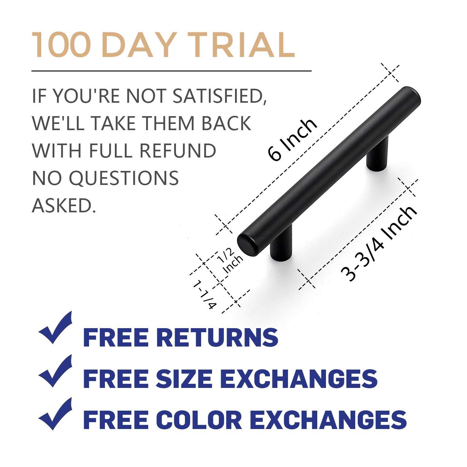 eBay Product Listing Welcome to Your Favorite My Store Your satisfaction is our top priority – Shop confidently 25 Pack 6 inch Cabinet Pulls Matte Black Stainless Steel Kitchen Drawer Pulls Cabinet Handles 3.75” Hole Center Item Gallery Item Description 365-Day Evaluation: We believe you'll find value in your handles. Use them for a full year, and if they don't meet your needs, we're here to help If you're replacing your handle, measure and ensure the center to center hole spacing of the current handle is 3-3/4 inches Installing new cabinet handles, drill two holes with center to center spacing of 3-3/4 inches STURDY & STRONG: 25 bar pulls made of 305 stainless steel finished with classic satin nickel coordinates well with other nickel appliances and accessoriess Simple look: The black cabinet handles have a wide appeal across a range of kitchen cabinet doors and drawers The matte black handles have a clean and timeless look that works with farmhouse, vintage, traditional and transitional styles [MEASUREMENT]:Hole centers(CC):3-3/4 inch(96mm), Total Length:6 inch(152mm), Diameter:1/2 inch(12mm) Projection:1-1/4 inch(32mm) Special Features For over a decade, has always been committed to bringing the best home revitalization experience to our users for we deeply understand what does a beautiful and fashionable house mean to a whole family. The Euro-style cabinet handle finished with satin nickel provides an elegant modern flavor to your cabinet and even your whole room. Fashionable and durable design coordinates with many décor themes, and are proven to be functional and elegant through years of use. Stainless steel handles can be used anywhere in the house to revitalize your kitchen or bathroom and provide any furniture updates. 25 handles in coordinating design and finish with two mounting holes can also be applied in cabinet drawers. Decorative Cabinet Hardware Revitalization with cabinet pulls is perfect for accenting the décor and style of existing cabinets or furniture. Decoration with our cabinet handles provide you with great convenience to change look and feel of an entire room. Stainless Steel Cabinet Pulls Adds a Distinguished Look The cabinet bar pulls elaborately crafted and designed to beautify your house with their simplicity. Tough Durable Design The lightweight but durable cabinet pull is built to withstand over years of wear and tear. They have a nice weight to them and come individually wrapped to protect against any scratches. Sleek Appearance Quick and easy install Screws included Our Guarantee To You We offer fast shipping, free delivery, and 100% customer satisfaction guarantee. Not satisfied? Return your item for free within 30 days. 30-Day Free Returns Shipping Details Items will be sent to your eBay address. Please verify before purchasing. Typical delivery within 3-7 business days. Professional shipping services used for all orders. We ship to the continental US (48 states only). Unable to deliver to Alaska, Hawaii, or territories. No APO/FPO or PO Box deliveries available. We use eco-friendly packaging Payment Options We accept these secure payment methods: All transactions securely processed through eBay's payment system. Simple Returns 30-Day Satisfaction Promise Contact us through eBay messages within 30 days of delivery. We'll provide return instructions and our address. Return the item in its original condition. We'll process your refund within 48 hours of receiving the item. Get In Touch Have questions about your order? Contact us through eBay messaging for prompt assistance. We typically respond within 24 hours.