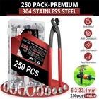 250PCS Single Ear Stepless Hose Clamps 304 Stainless Steel Ear Hose Clamps Plier