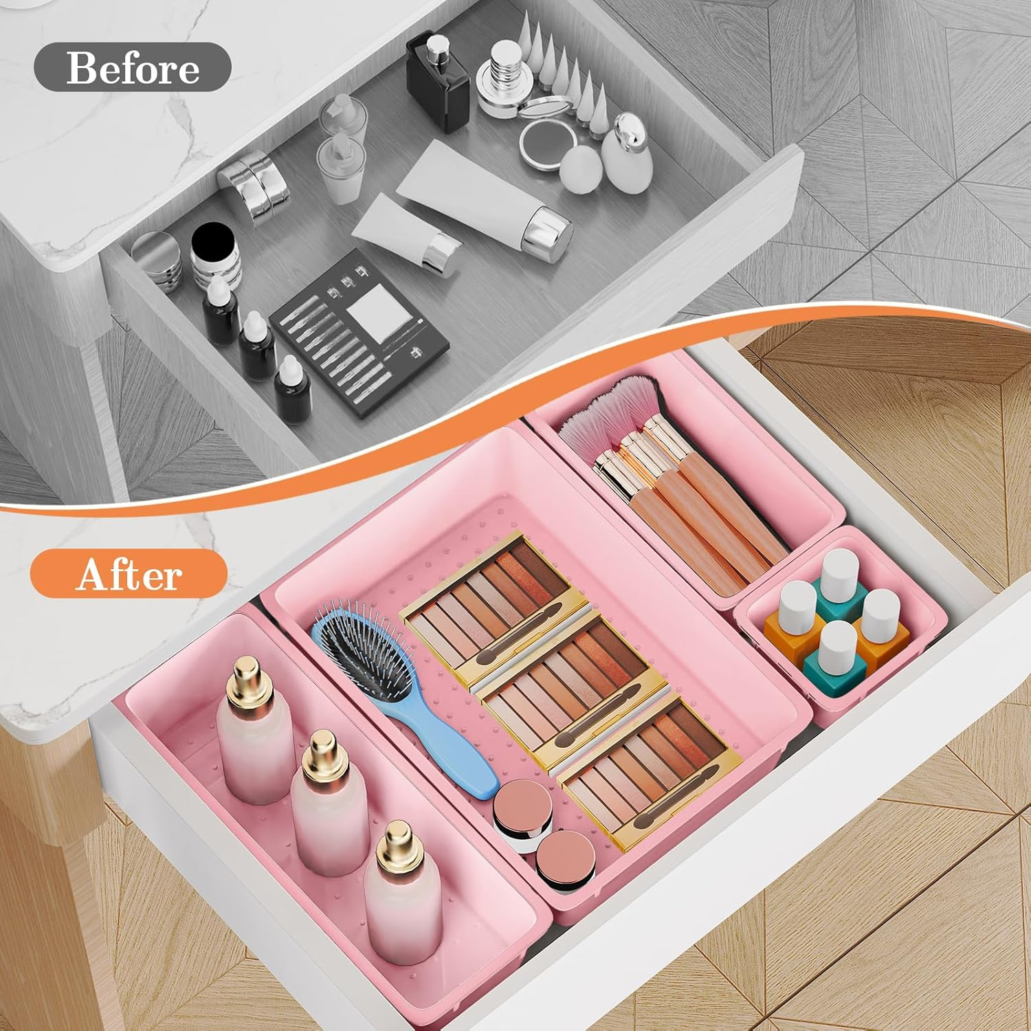 Store New Arrivals Add to Favorite View Feedback Contact 25 PCS Plastic Drawer Organizer Set, 4-Size Versatile Organizer Trays & Storage Bins for Makeup, Jewelry, and Gadgets in Bathroom, Bedroom and Office, Pink Description Item Package Quantity 25 Batteries Required? No Number of Items 25 Unit Count 25.0 Count Color Pink Product Dimensions 9"D x 6"W x 1.8"H Item Weight 2.18 pounds Item Weight 099 Kilograms Number of Compartments 25 Brand SpaceHacks Various Storage Options: These multi-functional drawer divider trays are suitable for use at home or in the office; suitable for all kinds of drawers, such as vanity/bathroom/kitchen/office, for organizing cosmetics, jewelry, accessories, office supplies, utensils, etc. 4 Different Combinations of Sizes: The drawer organizer includes 25 storage bins of 4 different sizes; includes: 9 x 6 x 1.8 inches (3 pcs), 9 x 3x 1.8 inches (6 pcs), 6 x 3 x 1.8 inches (8 pcs), 3 x 3 x1.8 inches (8 pcs) Non-Slip and Durable: Prevents the tray from moving side to side when the drawer opens and closes. Stackable Storage: These organizers can be stacked on top of each other to increase storage space when in use, and can be easily stowed away when not in use, taking up less space. Easy cleaning: Our desk drawer organizers simply need to be wiped down with a damp cloth or rinsed with water to keep it clean for continued use. Product Description Premium Material Stackable Design Non-Slip Grip on Bottom Bathroom Organizer Office Organizer Kitchen Organizer ABOUT US We offer the best prices around on high quality products. Our E-store includes media such as books, movies, music and games while offering electronics, toys, sporting apparel, clothing, tools, general home, garden items and more. SHIPPING We are always working hard to ensure your package arrives as soon as possible. Please understand that some factors like weather, high postal traffic, and the performance of shipping companies are outside of our control. We offer free shipping to the lower 48 states and ship within 2 business days of payment, usually sooner. We do not accept P.O. Boxes. Please provide a physical address. RETURNS We offer a 30-Day Return Policy on items which you are not completely satisfied with. You have the option for a full-refund or an exchange of the item. No returns are available on items shipped outside of the USA. PAYMENT We accept PayPal. CONTACT US This page content is yet to come Please ad us to your favorite seller and visit again later Thank You CUSTOMER SATISFACTION We try our very best to make sure every customer is completely satisfied. If there's a problem, message us! We're happy to help.