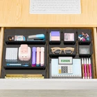 Various Storage Options: These multi-functional drawer divider trays are suitable for use at home or in the office; suitable for all kinds of drawers, such as vanity/bathroom/kitchen/office, for organizing cosmetics, jewelry, accessories, office supplies, utensils, etc. 4 Different Combinations of Sizes: The drawer organizer includes 25 storage bins of 4 different sizes; includes: 9 x 6 x 1.8 inches (3 pcs), 9 x 3x 1.8 inches (6 pcs), 6 x 3 x 1.8 inches (8 pcs), 3 x 3 x1.8 inches (8 pcs) Non-Slip and Durable: Prevents the tray from moving side to side when the drawer opens and closes. Stackable Storage: These organizers can be stacked on top of each other to increase storage space when in use, and can be easily stowed away when not in use, taking up less space. Easy cleaning: Our desk drawer organizers simply need to be wiped down with a damp cloth or rinsed with water to keep it clean for continued use. Product Description Premium Material Stackable Design Non-Slip Grip on Bottom Bathroom Organizer Office Organizer Kitchen Organizer