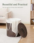 Sturdy and practical: Laundry basket with lid uses a strong steel pipe, so that the structure of the woven basket is strong, even if the laundry baskets contains a large number of clothes,the wicker laundry basket with lid will not be deformed Stylish and convenient: The woven hamper with lid is hand-woven from rattan material and wicker hamper is suitable for any room in the house. The wicker laundry hamper has a lid that allows the laundry hamper to neatly store clothes while hiding odors Large capacity: The size of the rattan laundry hamper with lid is 18.9”D x 20.9”H, the round and high structure of the wicker hamper with lid allows the woven laundry hamper to doesn’t take up a lot of space, also can holds quite a lot of clothing articles Removable Laundry Bags: The woven laundry basket with lid comes with a washable lining bag to tote the clothes to the washing machine and back. The rattan laundry basket has handles, making wicker laundry baskets easy to carry the basket to another room Easy to install: This woven laundry hamper with lid is quick to assemble and we provide the instructions and tools needed for assembly. The round storage basket with lid can also be folded to convenient daily storage of rattan hamper with lid