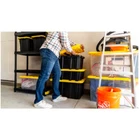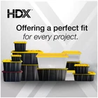 WE SHIP WITHIN 3-10 DAYS FROM USA We don’t ship items to PO box addresses, warehouse Free Shipping – Free Returns – Money Back Guarantee If you have any problem with the product, PLEASE contact me directly via eBay message, Please do not open a dispute because we cannot help if you open a dispute. Thank you very much! HDX 27 Gal. Tough Storage Tote in Black with Yellow Lid (4-Pack) About This Product This heavy-duty HDX 27-Gallon Tough Tote is designed to handle all your storage needs. The recessed lid enables you to stack multiple units effortlessly, while the tapered design facilitates easy nesting when you need to store them. With a sturdy black base crafted from high-grade resin and a yellow snap lid, your items are safe and protected. Ideal for the thorough organizer seeking top-tier storage solutions, this tote features integrated slots for locking to deter unwanted access. Its unique tie-down channels also make it easy to secure for hassle-free transport and it's compatible with most hitch mounted cargo carriers. So that you can easily recognize what size your tote is, the gallon size is clearly visible on both the base and the lid. Embrace the essence of organized living with HDX Tough Totes! Highlights Exclusive online 4 Pack Weight capacity 75 lbs. Product empty weight 6.1 lbs. Exterior dimensions (at top of tote) 28.6 in. L x 19.6 in. W x 15.2 in. H Interior dimensions (at bottom of tote) 22.98 in. L x 14.02 in. W x 14.30 in. H Tie-down channels help with securing totes while transporting Snap-on lid with integrated zip tie/padlock holes for lockability These heavy-duty totes are convenient for storing in bulk; moving; organizing offices, food pantries, garages and closets; plus many more home or jobsite uses Comfortable ergonomic handles for easy carrying Stackable space saving design Storage containers nest when empty for easy storage Product Information Internet # 331356079 Model # 999-HDX-27G-4 Store SKU # 1012262676 Dimensions Product Depth (in.) 19.60 in Product Height (in.) 15.2 in Product Width (in.) 28.5 in Details Color Family Yellow Color/Finish Black-Yellow Lid Color Yellow Lid/Top Mechanism Detached Material Plastic Pack Size 4 Returnable 90-Day Shape Rectangle Storage Capacity 27 gal Storage Features Built-in Handles, Durable, Heavy Duty, Includes Top, Nestable, Stackable Storage Product Type Storage Bins and Totes Weight Capacity (lb.) 75 lb