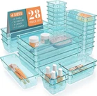 Premium Material: The transparent material of the plastic organizer bin can help to see the items inside clearly, easy to find and use. Diversified Dimensions: A set of cabinet organizer includes 25 storage bins of 4 different sizes. Includes: 9 x 6 x 1.8 inches (4pcs), 9 x 3x 1.8 inches(4pcs), 6 x 3 x 1.8 inches(10pcs), 3 x 3 x 1.8 inches(10cps). You can customize the combination to customize your own drawers. Versatile Storage Options:These clear versatile drawer dividers trays are suitable for various drawers such as dresser/bathroom/kitchen/office drawers/craft room, ideal for organizing cosmetics, pins, hair accessories, jewelry, tableware, office supplies, crafts and more. Stackable Design: These clear storage bins not only stackable but also maximize space so that your desk drawers can be effectively organized. Non-Slip Design: The bottom of the organizer bins has a non-slip design to prevent the tray from moving around when opening and closing the drawer. Product Description Premium Material Stackable Design Non-Slip Grip on Bottom Office Organizer Kitchen Organizer Bathroom Organizer