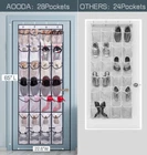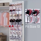 【More Pockets】: Door shoe storage with 28 large pockets in total, it has more 4 pockets than other similar hanging organizer, so shoe hanger organizer for closet can holding 14 pairs of men shoes at least, such as tennis shoes, sneakers, or 28 pairs of slippers, flip flops, sandals, heels, kids shoes etc; 【Large Pockets】: Each pocket spacious enough to put a size 13 men shoe or a pair of women shoes, shoe bags storage closet doesn't takes up any space, no shoes on the floor and no shoe shelves taking up floor space, making your home more organized and neat, each pocket size:7.48"L x 5.7"W; 【Fit Large Door】: It's designed for large door, overall dimension: 65" L x 22.6W"; hanging door shoe caddy for closet has 4 sturdy metal hooks which maximizes the loading weight and makes the hanging over door organizer attach your door more smoothly and neatly, simply hang it over your door, the hook is 0.07" thickness, fit standard door between 1.37" to 1.65"; 【Sturdy Material】: Sturdy oxford material keeps the structure rigid, clear mesh large pocket allow for easy viewing of the contents within, back of door shoe holder promote airflow through the pockets keeping shoes fresh; 【Versatile Usage】: It's not only offers a convenient way to store shoes, behind of door shoe rack organizer suit for storing kinds of stuff, socks, hats, toys, baby's clothing, barbie doll, accessories, etc. Add function and style to your organizational needs, kids shoe organizer fit behind pantry, wall,closet, dorm room, bedroom, kids room, toddler nursery room, bathroom etc. Product Description Multi-Purpose for Your Need View Details Large Pocket Each pocket large enough to put a size 13 men's sneaker, tennis shoes, sport shoes. Breathable Material Sturdy oxford material promotes airflow through the pockets keeping shoes fresh. Easy to Access Clear mesh large pocket allow for easy viewing of the contents within 4 Sturdy Metal Hooks With 4 sturdy metal hooks which makes hat holder attach your door more smoothly and neatly. Can each pocket really fit a men's size 13 shoe? Enough to put a size 13 men shoe. How many pairs of shoes can hold? Room for 14 pairs of regular sized shoes. What're the Size of the Hooks? The hook is 0.07" thickness, fit standard door bettwen 1.37" to 1.65". Compare These Shoe Storage Add to Cart Add to Cart Add to Cart Add to Cart Add to Cart Customer Reviews 4.6 out of 5 stars 98 4.6 out of 5 stars 82 4.7 out of 5 stars 15 4.7 out of 5 stars 2,880 4.7 out of 5 stars 6,078 Price $20.99 $ 20 . 99 $24.99 $ 24 . 99 $32.99 $ 32 . 99 $25.99 $ 25 . 99 $21.99 $ 21 . 99 Color Black Black Black Black Bronze Size 21" W x 5.7" D x 62" H 9.8"D x 16.5"W x 71"H 11.4"D x 17.3"W x 70"H 42.7''W x 11.4''D x 18.7''H 42.7''W x 11.4''D x 24.4''H Capacity At Least 24 Pairs 20 Pairs 25 Pairs 18 Pairs 24 Pairs Material Oxford Fabric PVC+Fabric Oxford Fabric+Metal Metal Oxford Fabric+Metal Usage Over the Door,Closet,Dorm Over the Door,Closet Floor,Closet,Entryway Floor,Closet,Entryway Floor,Closet,Entryway