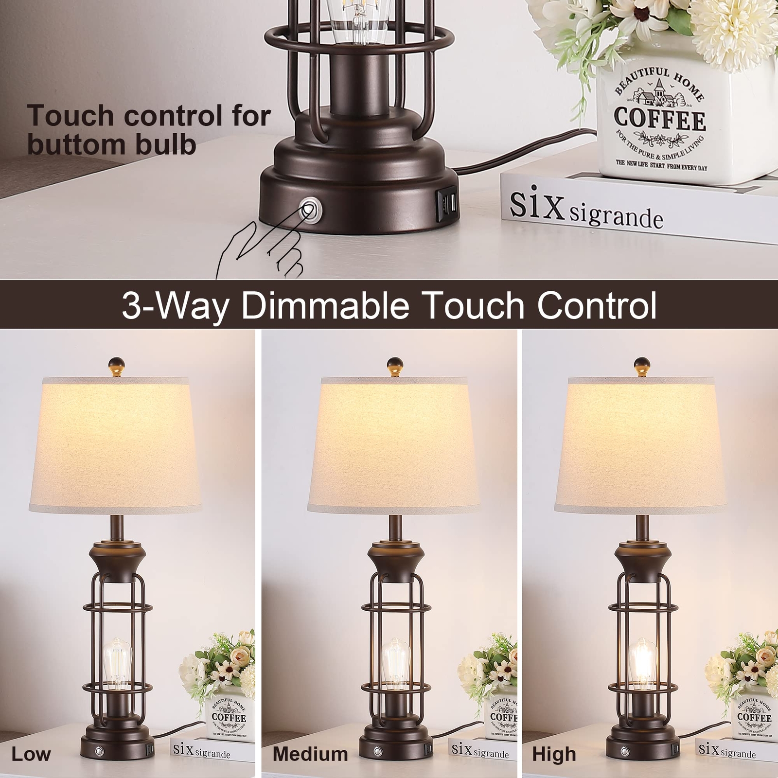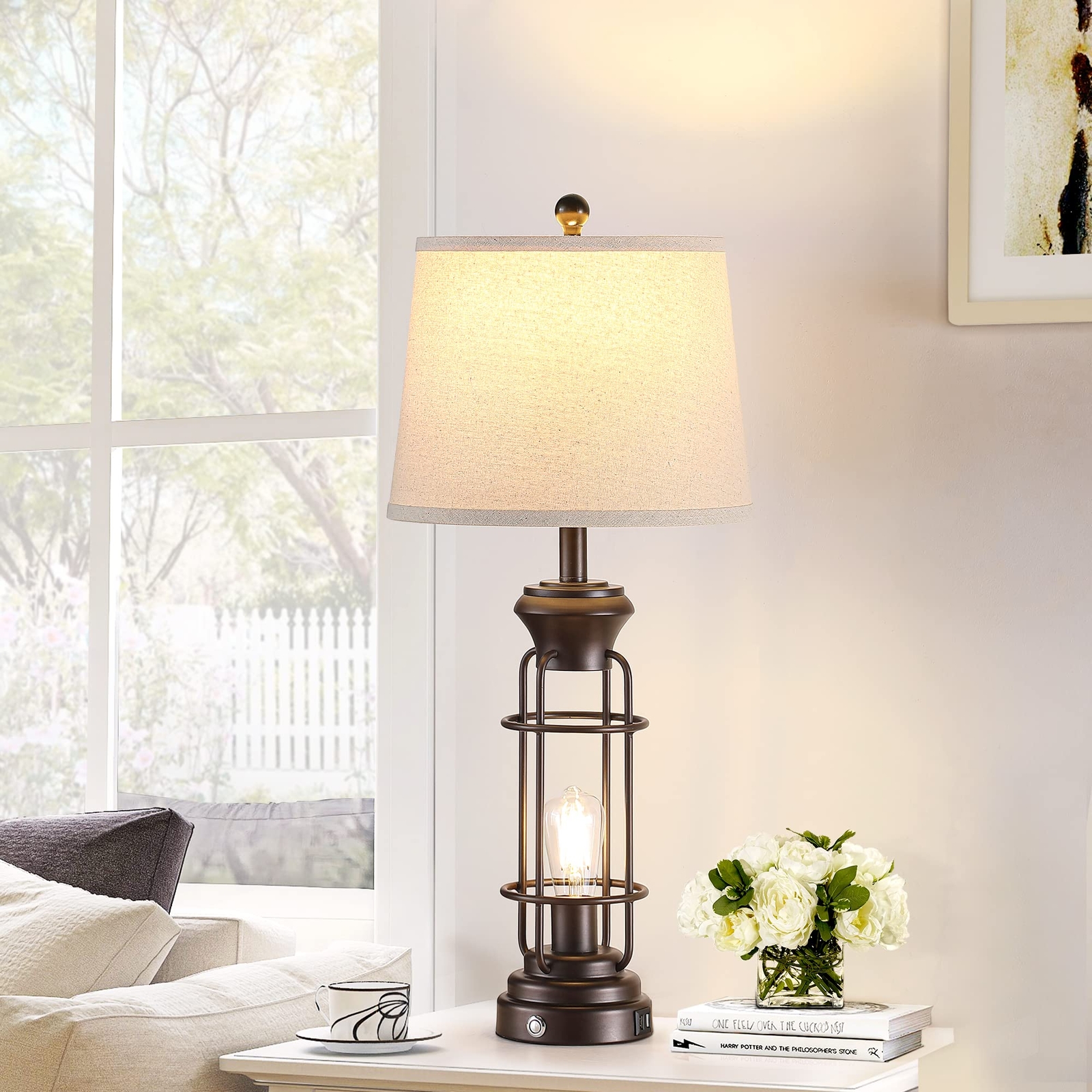 ✔ Retro & Creative Design - The design of this industrial table lamp is inspired by retro style elements. The body and base of this table lamps are all made of metal, making it sturdy and durable. The lampshade is made of pure natural linen, and the thick linen shade can soften the light, protect the eyes. You can place them in your living room, bedroom or study to create a romantic and warm environment in your home. ✔ 3-way Dimmable Touch Control - This rustic table lamp offers 3 level brightness options (Low, Medium, High) to meet your needs by touching the round metal switch on base to adjust the brightness . It is a good sleeping companion for you because it is very quiet and does not make a noisy sound like a traditional switch. Perfect for nightstand mood, decorative accent, daily use or bright working light. ✔ 2 USB Charging Ports - Each nightstand lamp has dual USB charging ports bulit in for charging phones and other electronic devices. And what the greatest advantage is that whether the tall table lamp is on or off, these charging ports can still keep working. This table lamp with USB would be perfect beside a sofa for someone to read by,or as a bedside lamp to cut down on clutter from wall chargers. ✔ 4 LED Bulbs Included - Comes with 4 LED light bulbs in the package, no need to buy bulbs separately. We specifically choose the dimmable LED Edison bulbs, saving up to 90% on your energy bill. The E26 led bulb comes in 2700K with 805lm brightness, which meets strict test criteria. Provide stable enjoyable and cozy light, no flicker, no dazzle. ✔ Easy Installation & Satisfactoty Service - The installation of this farmhouse lamps for nightstands is very simple, just 4 steps to get a rustic lamps in no time. If you have any questions about these living room lamps, please contact us. We will always be here and reply within 24 hours.