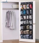 28 Pockets Offers More Space: with 24 shoe door hanger, 28 pockets utilize unused space behind door to fits 14 pairs of large men shoes, size is 65 by 22.6 inches fits entryway normal door, closet door, bedroom door, bathroom door Large Mesh Breathable Pockets: Hanging shoe rack allows 1 size 13 men shoe or pair of flat sandals per slot, also fit women high heels, shoes, tennis shoes, running Shoes, sneakers; Easily find something you need with a glance; Each pocket measure: 7.48"L x 5.7"W 4 Metal Hooks for Home Door: Fit for door as thick as 1.37"-1.65", door shoe storage supports the weight of 28 shoes(about 40 lb), easy to install and close the door Could Be Placed on Door or Wall: Hanging shoe caddy organizer attached hooks is removable, the hang grommets are 0.6" that fit for your other adhesive hooks, screws, nails, straps, etc Versatile Space Saver Shoe Holder for Back of Door: Not only for kinds of shoes, but also organize your toiletries, hats, clothes, baby toys, scarves, gloves, nursery, socks