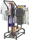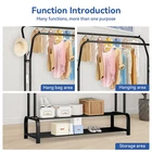 eaby Home Payment Shipping Return Policy About Us Contact Us Feedback 2Bar Metal Garment Rack Heavy Duty Closet Organizer Clothes Hanger Shoes Storage About this item: This practical and fashionable coat rack is an amazing choice for clothes storage, helping you well organize your clothes, shoes, hats and bags in your entryway, bedroom, office, etc. Made of well-built heavy duty iron material, it is strong in bearing capacity, stable and durable. This item is also easy to use and simple to install. Top quality and fine workmanship, a good item for you to tidy up your house. Feature: - Multifunctional : This garment rack can be used not only as coat rack, but also as hanging rail. It can well organize your clothes, shoes, hats and bags in your entryway, bedroom, office, etc. Modern and fashionable style, perfectly matches your room. - Sturdy & Large Capacity : This portable coat rack is made of highly-quality iron pipe, which is strong in bearing capacity, stable and durable. Double rod design, it can hang a lot of clothes. The higher shelf provides more space for boxes and folded clothes, and the lower shelf provides more storage space for shoes. - Wonderful Detailing : There is a height from the bottom shelves to the hanger rod, so you can hang long pieces of clothing such as coats and dresses. Designed with 8 additional small hangers, you could freely hang up small stuffs like belts, hats or hand bags, etc. - Easy to Assemble and Clean : The coat rack can be quickly assembled according to the instruction and the parts provided. Simply wipe with a cloth to clean the surface of the rack. Specification: Type: Multifunctional Coat Rack Material: High-quality iron pipe Whole size: 110*35*146cm/43.31*13.78*57.48inches Color: Black Shape: As Picture Shows Pattern: Solid Style: Modern Assembly Required: Yes Mounting Type: Free standing Package Contents: 1*Garment Rack 1*Instruction Note: 1. Please read the instruction carefully before assembling. If you have any questions about the product, please contact us. 2. The picture may be a little different from that of real item due to the different display and different light. 3. Due to different producing batches, product details might be a little different. If you mind the difference, please buy with caution. Thank you for your understanding. 4. Please allow minor differs due to manual measurement. Payment We offer all payment methods accepted by eBay and all payments are made through eBay. You don't need to worry about giving out money or personal information. Delivery details 1. Continental U.S. 48 States - Free Standard Shipping. 2. USA average transit time is from 2 ~ 5 business days. 3. Tracking numbers will be sent to you once your order has been shipped. Return 1. Defective products can be returned for exchange or full refund within 30 days from the date you receive the item. 2. The item price and shipping fee will not be refunded when a bad address leads to a package being lost or abandoned. Contact us Please feel free to contact us anytime and we will give you a reply within 24 Hours.