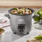 Mini Rice Cooker with 2-cup capacity for an easy breakfast, lunch, or snack. Minimal set up: just plug in, add water and press cook! Keep Warm function continues to warm food after cooking without overheating. Portable, Compact size. Removable pot with nonstick coating that releases easily. Includes: Dash Mini Rice Cooker, Rice Paddle, Measuring Cup, Removable Pot, and Recipe Guide. 1-year manufacturer warranty, 2-year warranty available with registration to the Feel Good Rewards program.