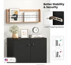 2 Door Storage Base Cabinet - Freestanding Floor Cabinet with 3-Tier Shelf - Black Large Storage Space: This storage cabinet with two doors can keep your items clean and dry. The 3-tier inner shelf provides ample storage space and allows you to classify different items. Plus, the spacious top is a good place to showcase artwork, potted plants, photos and more. Anti-toppling Device & Non-slip Foot Pads: To further improve safety and stability, our floor cabinet is equipped with anti-toppling fittings to fix it to the wall. Non-slip foot pads effectively prevent the floor from being scratched. This freestanding cabinet can hold a total of 242 lbs without wobbling. High-quality Materials: Made of high-grade MDF and engineered wood, this storage cabinet has excellent hardness and sturdiness that will serve for many years to come. In addition, the base cabinet has flexible hinges and smooth round knobs. Modern & Simple Design: This simple yet stylish storage organizer will be a modern focal point in your home, which fits perfectly with the rest of your furniture and decor. Whether in the living room, entryway, kitchen, office, it is sure to be a practical and eye-catching addition. Easy to Assemble & Maintain: Thanks to the detailed instructions and all the accessories in the package, you are able to easily put this 2-door storage cabinet together. Better yet, the surface is smooth and flat, which requires very little cleaning and maintenance in daily life. Overall Dimension: 28.5" x 13.5" x 33.5". Description: If you are looking for a versatile storage cabinet, this 2-door floor cabinet would be worth considering. More than a storage cabinet, you can use it as a display cabinet to put storage basket, handicrafts or as a cupboard to store kitchen supplies. Besides, high quality board makes this cabinet sturdy and durable for long-term use. 2 Anti-toppling kits can be seen at the side of the cabinet, which effectively get rid of falling, wobbling and tilting. This multifunctional storage cabinet is perfect for different decor styles or purposes. Features: Wide top & 2-door cabinet meet different storage needs The enclosed cabinet is designed to prevent dust Crafted of thickened and durable board for long-lasting use Non-slip foot pads protect the floor from damaged Equipped with anti-toppling device for added stability Modern design exudes a high-end and elegant feel Equipped with knobs and metal hinges for convenient use Suitable for living room, kitchen, dining room, bathroom or entryway Water and scratch-resistant surface for easy clean-up Easy to install according to the detailed instruction Specifications: Material: Engineered Wood, MDF Overall Dimensions: 28.5” x 13.5” x 33.5”(L x W x H) Shelf Dimensions: 27” x 12”(L x W) Height Between Each Shelf: 10.5”, 10.5”, 8” Baseboard Height: 3” Weight Capacity of Tabletop: 110 lbs Weight Capacity of Each Shelf: 44 lbs Net Weight: 56.5 lbs Package Includes: 1 x 2-Door Cabinet 1 x Instruction Why You Choose Our 2-Door Storage Cabinet? √Wide top and 2-door cabinet keep daily items organized. √2 Anti-toppling kits account for reliable structure.