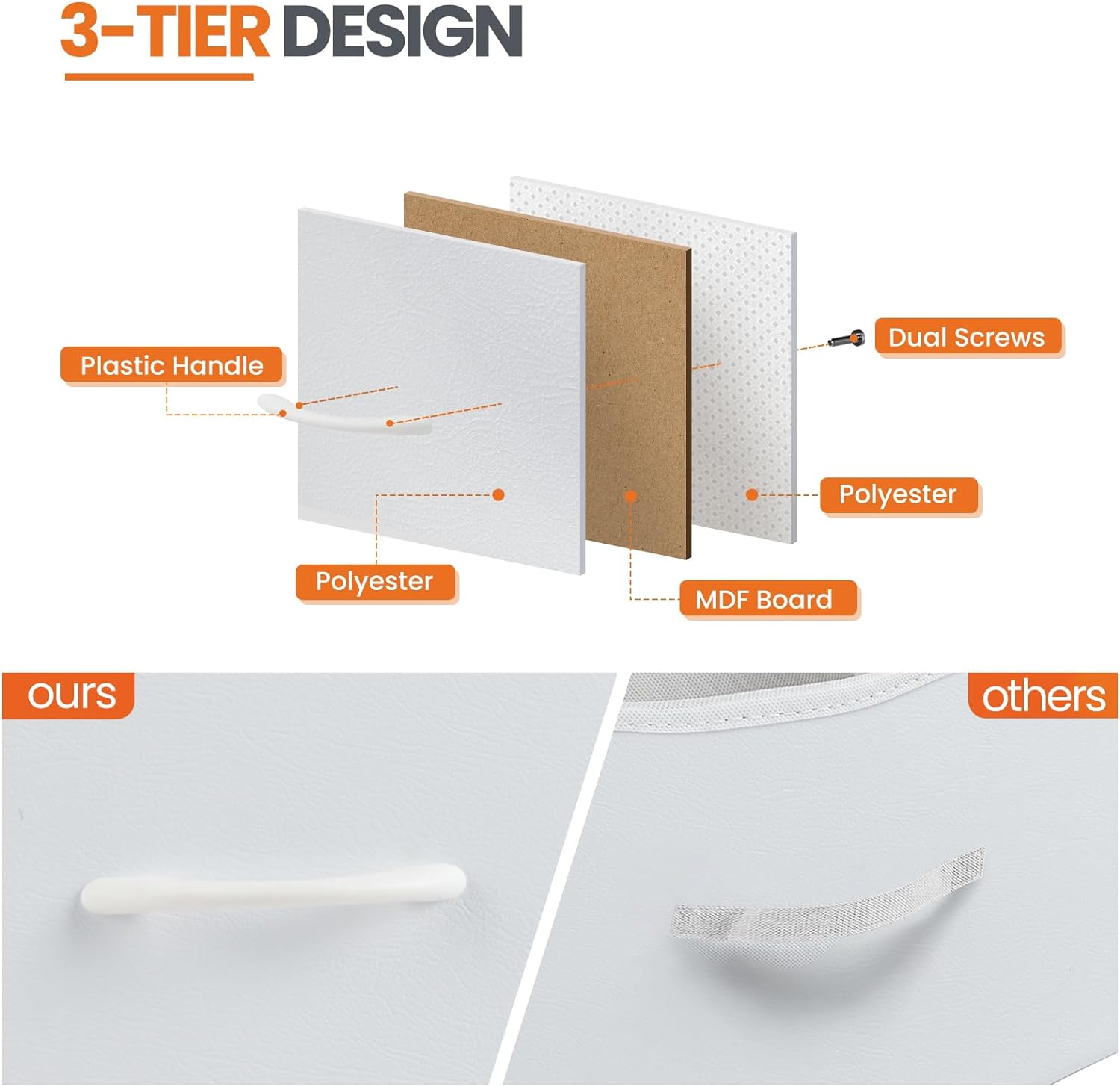 Fabric 【Nightstand Design】The small nightstand comes with 2 removable fabric drawers design of the side table matches perfectly with any furnishing style. The bedside table offers large storage space for nighttime necessities. 【Multi-purpose】This end table is ideal for bedrooms, college dorms, living rooms, offices, and more. The small nightstand can be a mini dresser for the bedroom, a kids' dresser, a convenient end table by a sofa, or a toy organizer in the children's room. 【Adjustable Dresser Legs】Maintaining balance and stability is crucial for the nightstand table. Once the floor is slightly uneven, the use effect will be greatly reduced. Adjustable table legs for small living room tables can improve this bad experience. When one corner of the table is tilted, simply adjust the legs to bring the table back to smoothness. 【Studry & Durable】The nightstand has a strong steel frame and water-resistant wooden top to ensure a long service time, easy-pull plastic handles to make opening and closing smooth, and 4 adjustable plastic feet to protect the floor from scratches. 【Easy to Assmble】 The package will come with all the tools and accessories for quick assembly, which allows only about 15 minutes to assemble your nightstand organizer with detailed instructions and the installation video. If you have encountered any problems, we would be delighted to help you find a solution and reply to your email within 24 hours Product Description 1 Bedroom 2 Living Room 3 Study Room 4 Closets The video showcases the product in use. The video guides you through product setup. The video compares multiple products. The video shows the product being unpacked. Nightstand & Dresser & TV Stand Customer Reviews 4.4 out of 5 stars 56 4.3 out of 5 stars 24 4.3 out of 5 stars 50 4.6 out of 5 stars 66 — Adjustable Feets ✔ ✔ ✔ ✔ ✔ Metal Frame ✔ ✔ ✔ ✔ ✔ Anti-tilt Function ✔ ✔ ✔ ✔ ✔ Drawers 2 2 5 5 8 Colors Black/White/Grey/Rustic Brown Black/White/Grey/Rustic Brown Black/White/Grey/Rustic Brown Black/White/Grey/Rustic Brown Black/White/Grey/Rustic Brown Height 20 Inches 25 Inches 20.87 Inches 30 Inches 36 Inches